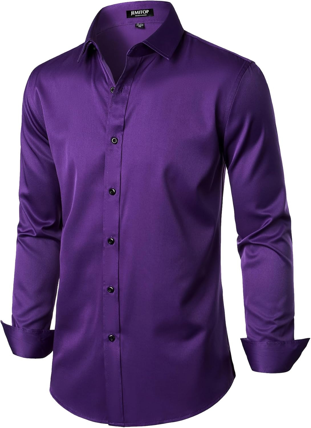 Men'S Stretch Wrinkle Free Dress Shirts Formal Wedding Prom Long Sleeve Slim ...