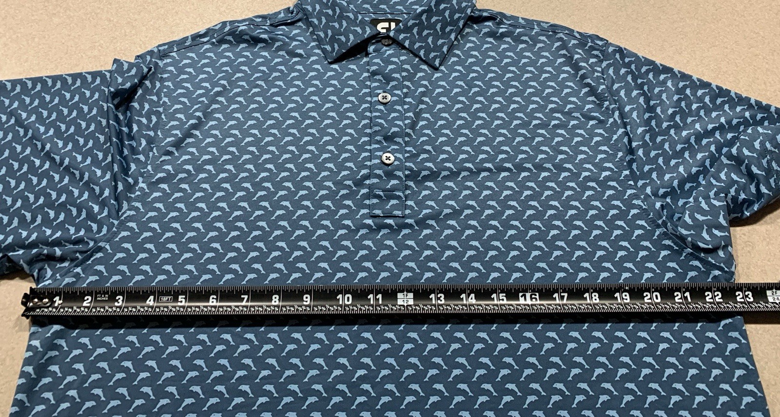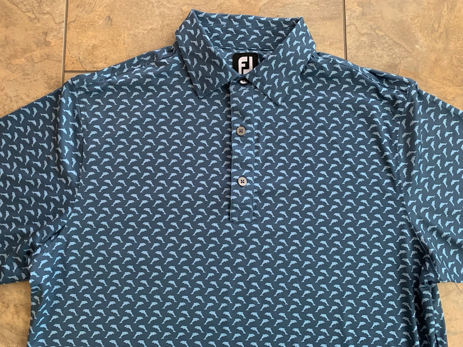 как выглядит FootJoy FJ Polo Shirt Mens Medium Blue Dolphin Print Golf Performance Stretch фото