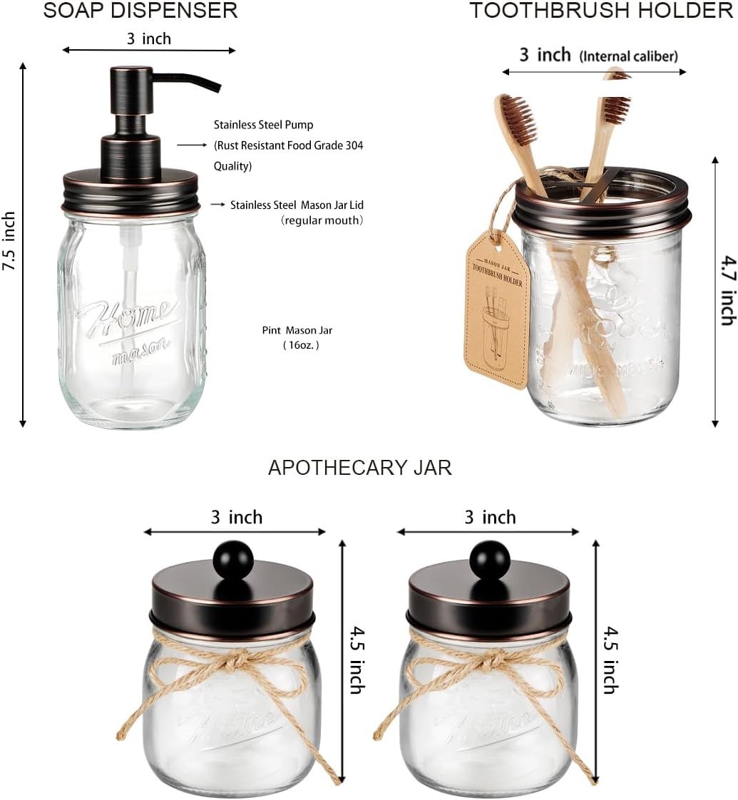 Rustic 4-Piece Mason Jar Bathroom Decor Set with Soap Dispenser Holders
