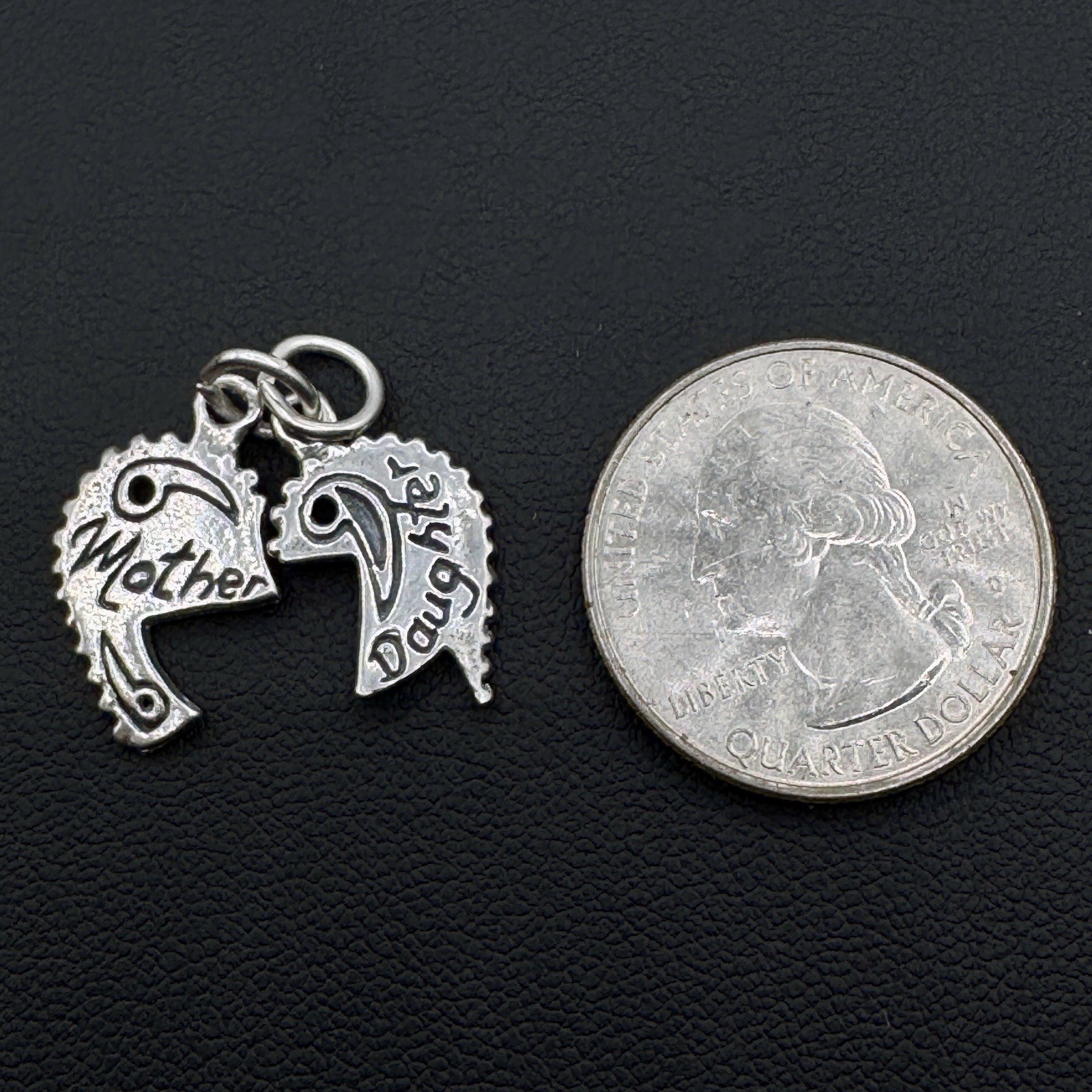 Mother Daughter Half-Heart Charms Pendants Sterling Silver SJC Vintage Gift