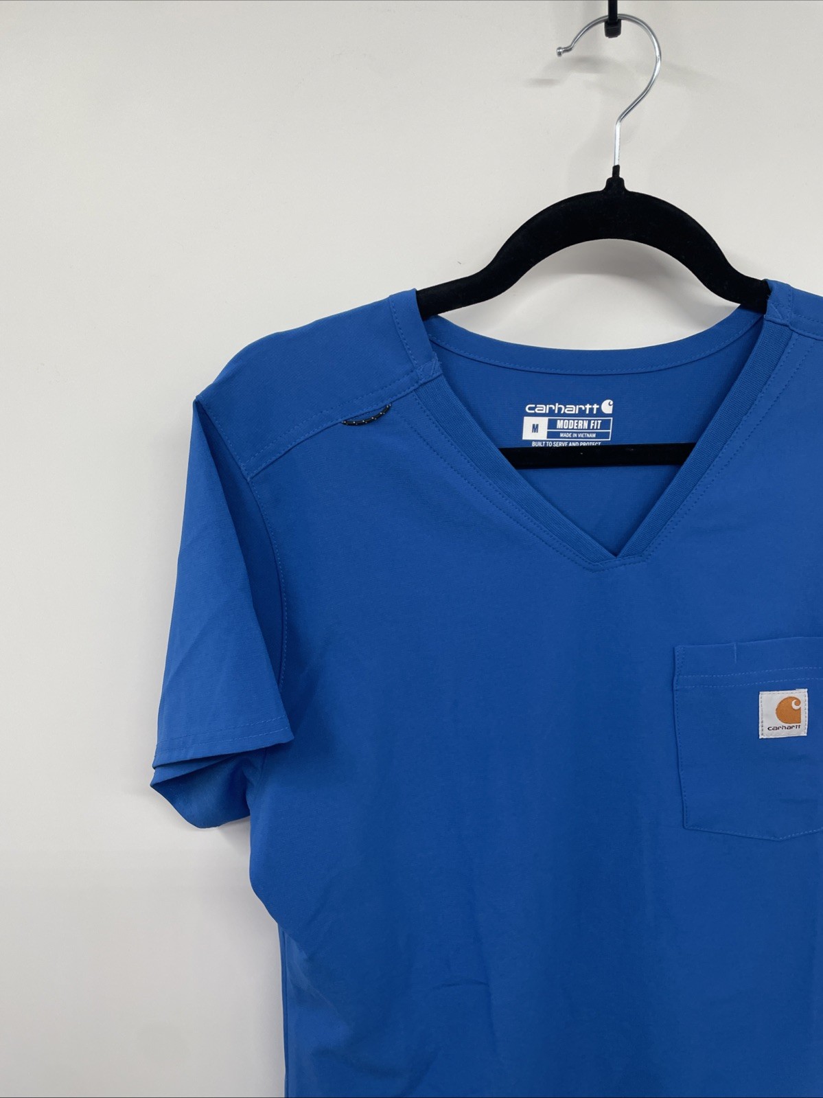 Carhartt Force Cross-Flex Tuck In Scrub Top Womens M Blue Modern Fit V Neck NWT