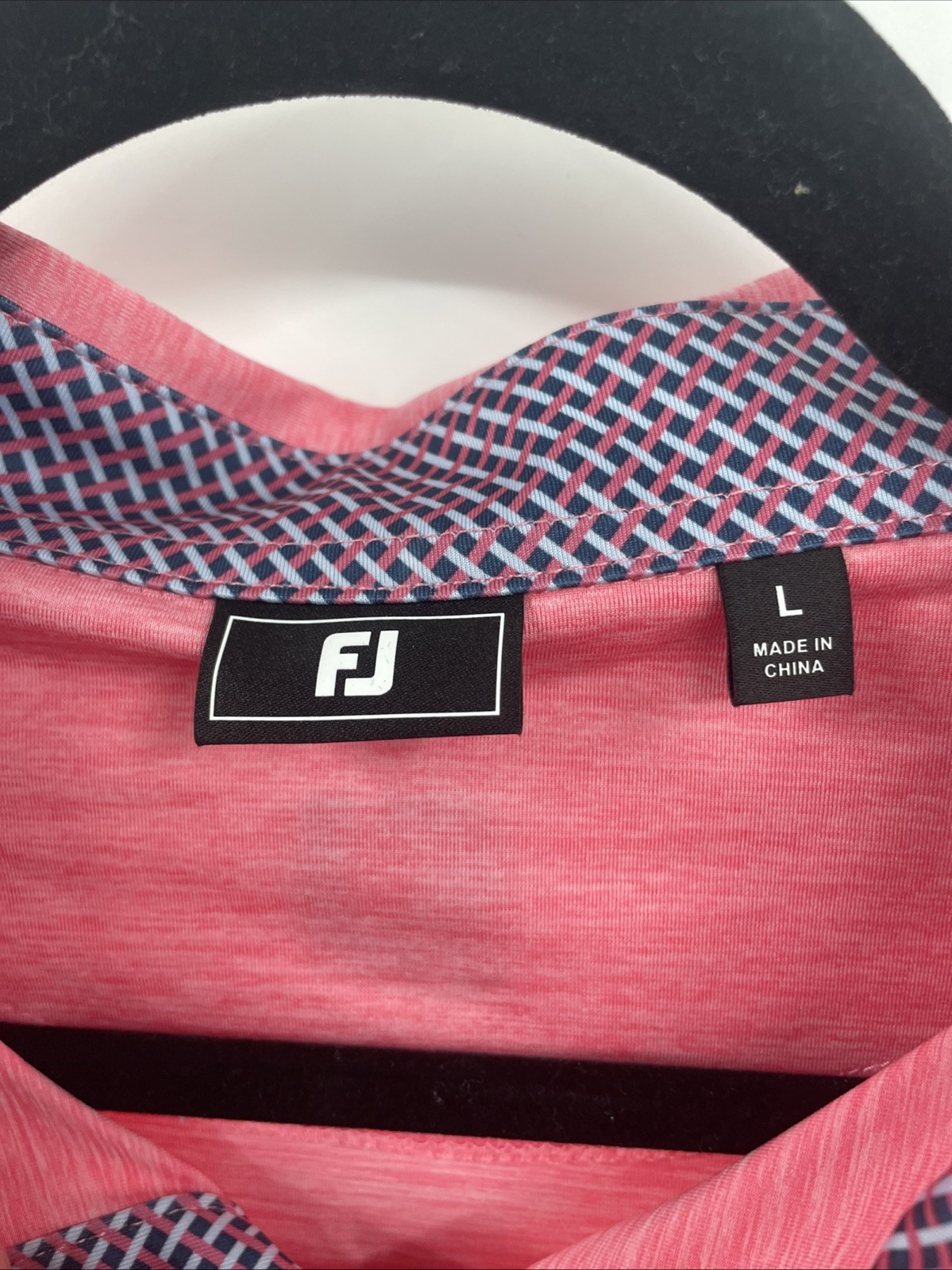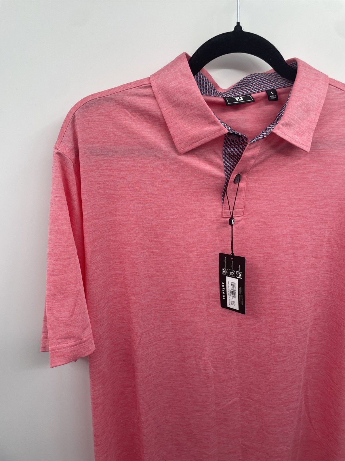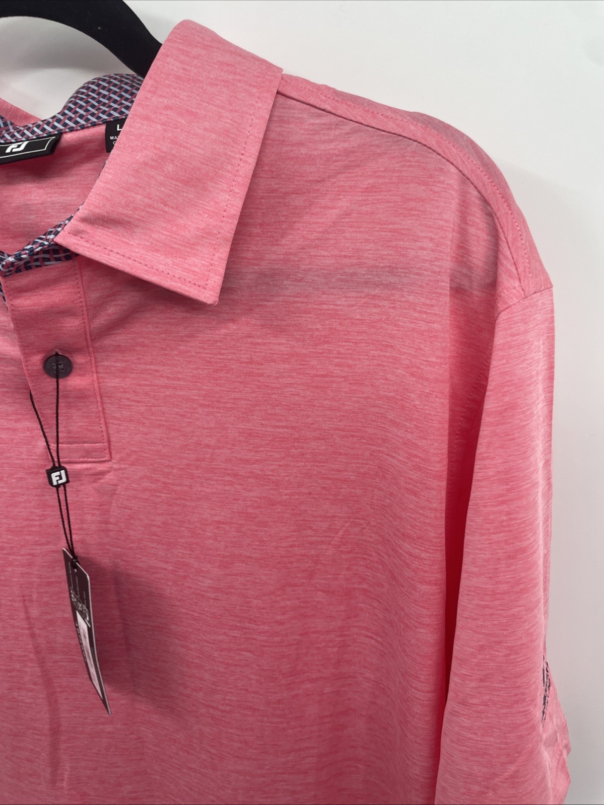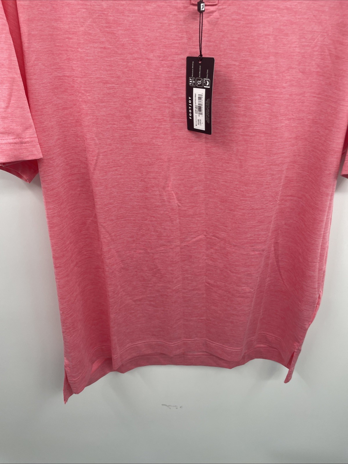 как выглядит FootJoy Polo Shirt Mens Large Pink Lemonade Heather Lisle Lattice Trim Golf NWT фото