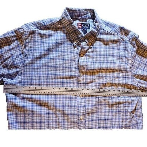 как выглядит Chaps Mens LS Shirt XL Blue-White-Pink Pattern Button-Up Cotton фото