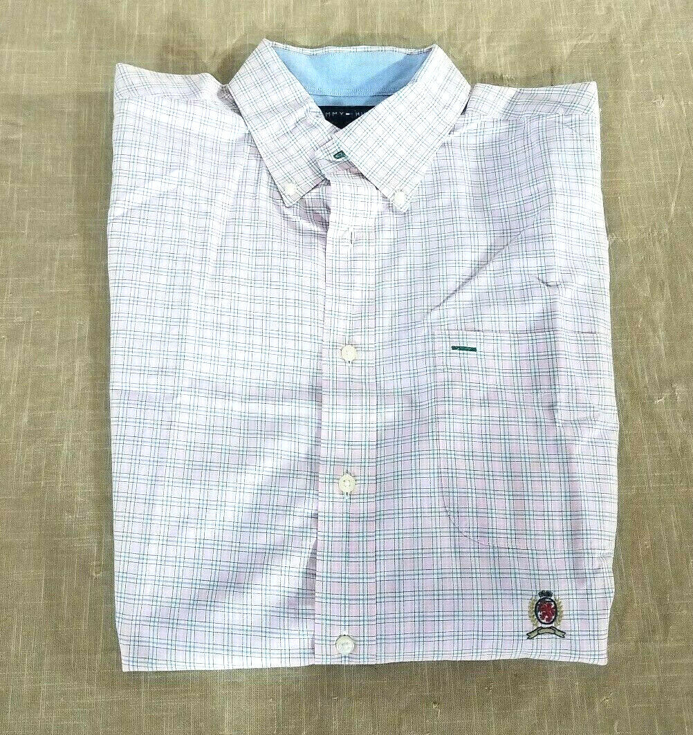 как выглядит Tommy Hilfiger LS Plaid Checks Button Down Shirt Crest Logo Mens L Runs Big фото