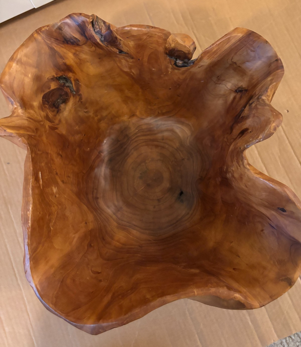 как выглядит d ECCO Hand Carved Solid Wood Root Bowl Organic Teak Centerpiece Decor фото
