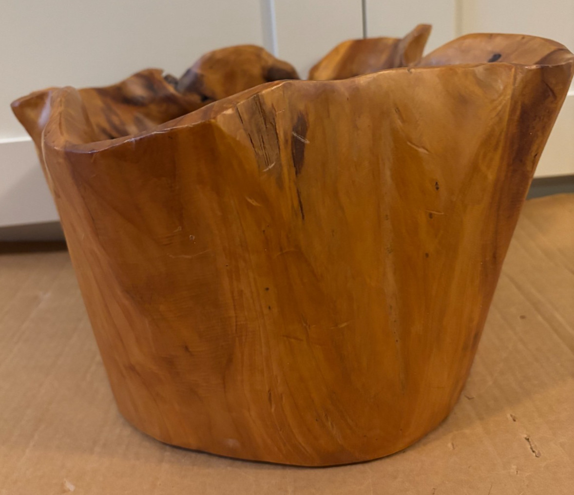 d ECCO Hand Carved Solid Wood Root Bowl Organic Teak Centerpiece Decor