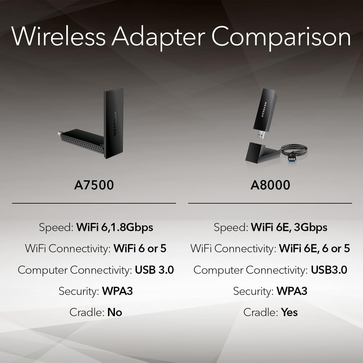 Nighthawk Wifi 6 USB 3.0 Adapter A7500 AX1800 Dual-Band Wireless Gigabit Spe