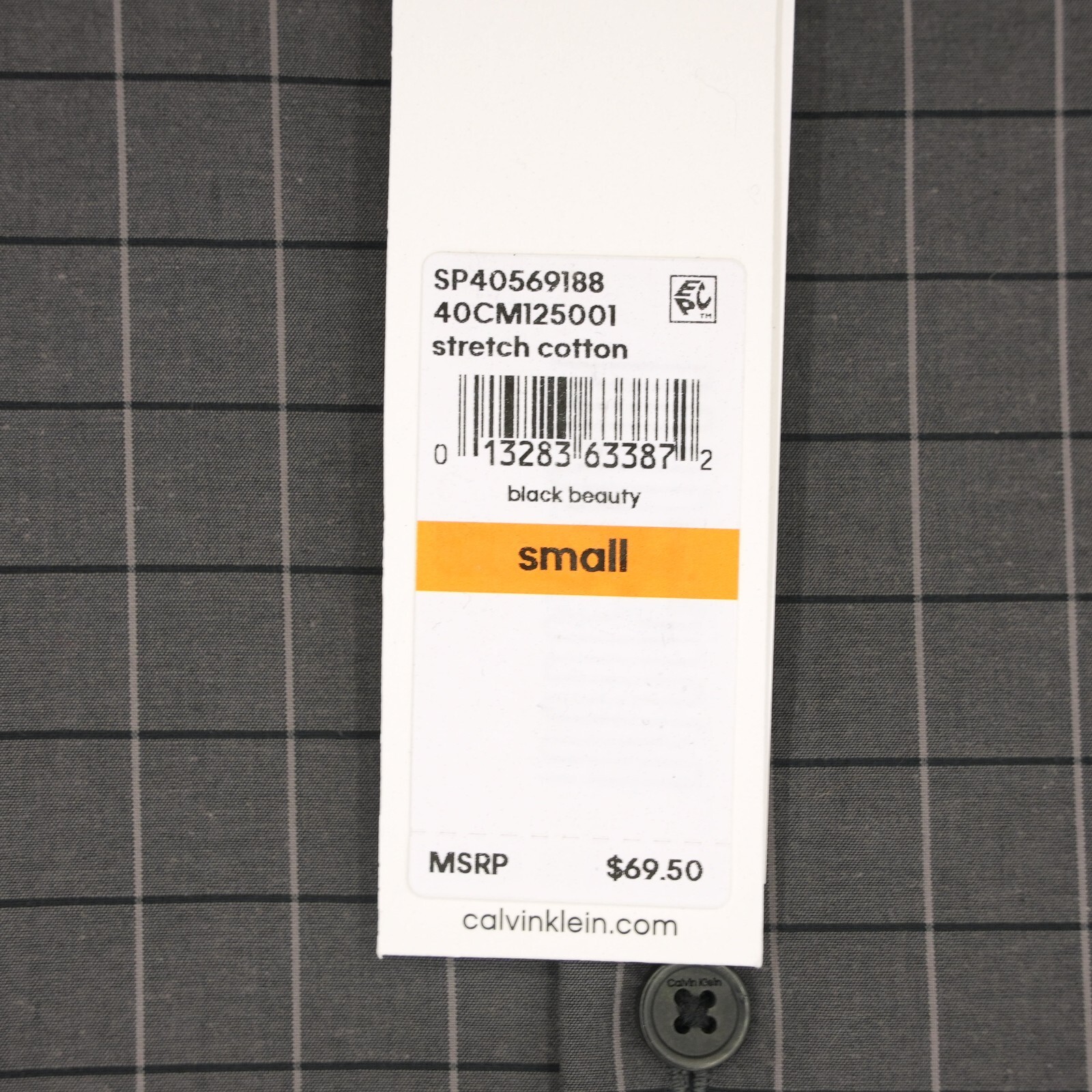 Calvin Klein Men's Long Sleeve Dress Shirt Small Gray Check Stretch Cotton NWT
