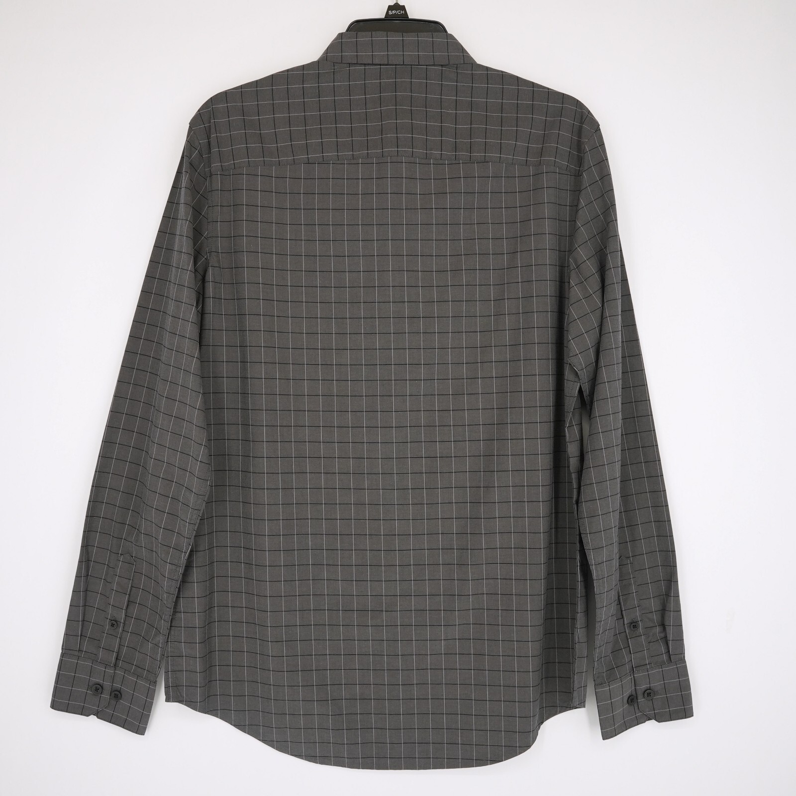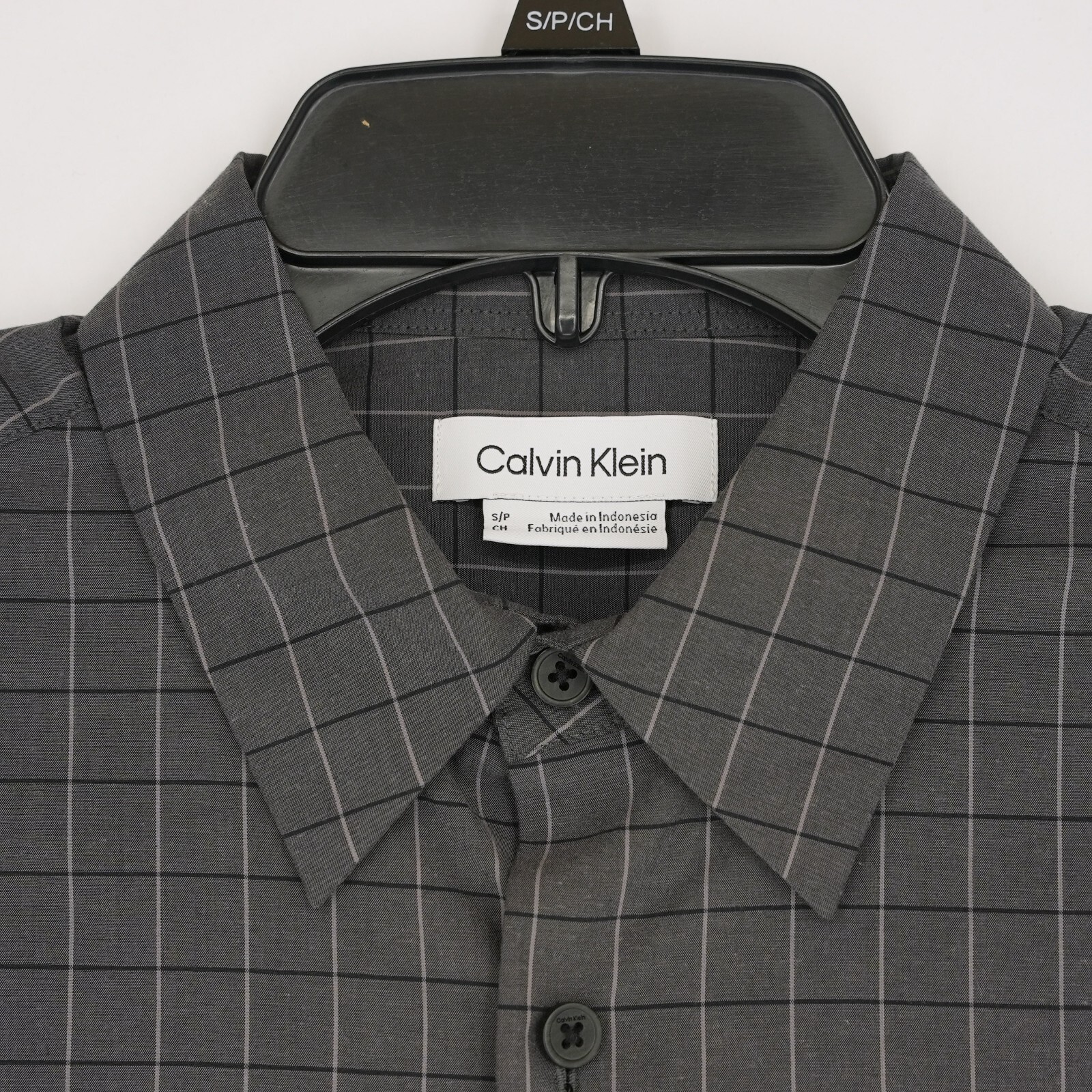 как выглядит Calvin Klein Mens Long Sleeve Dress Shirt Small Gray Check Stretch Cotton NWT фото