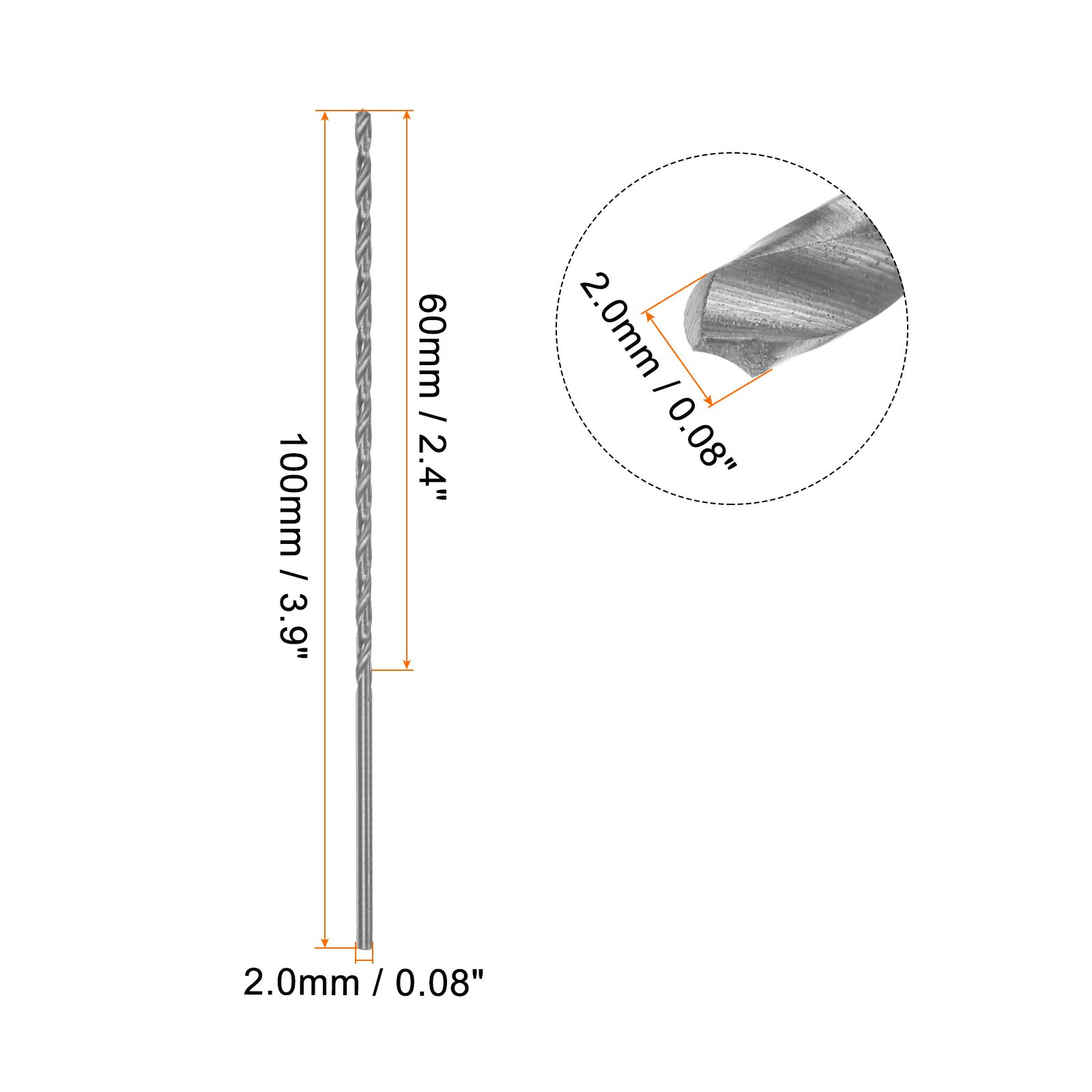 10pcs - Extra Long Drill Bits 2mm HSS High Speed Steel Drill Bit 100mm Length