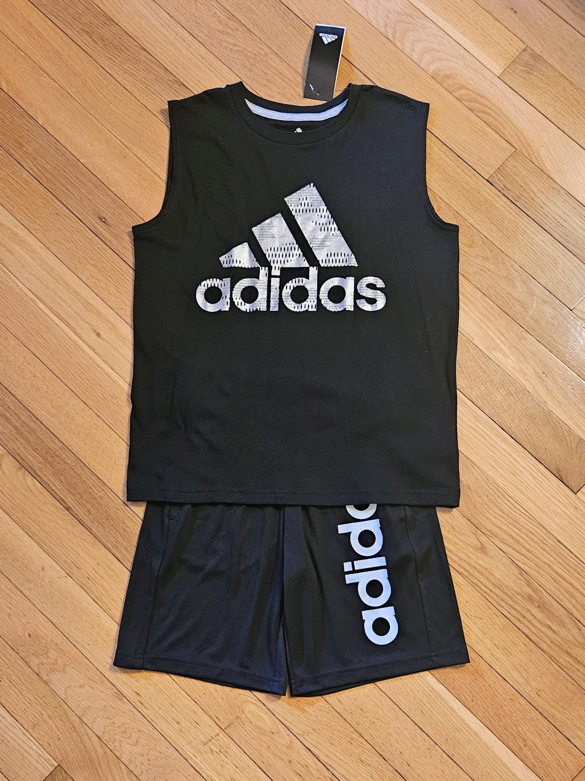 NEW ADIDAS Youth Big Boy Tank Top Drawstring Short Set, Black YS