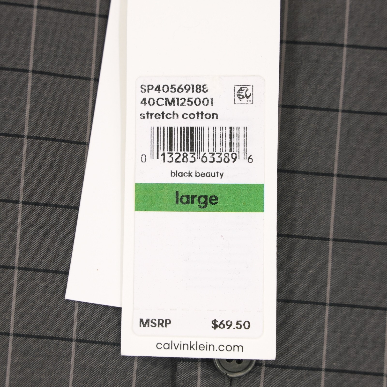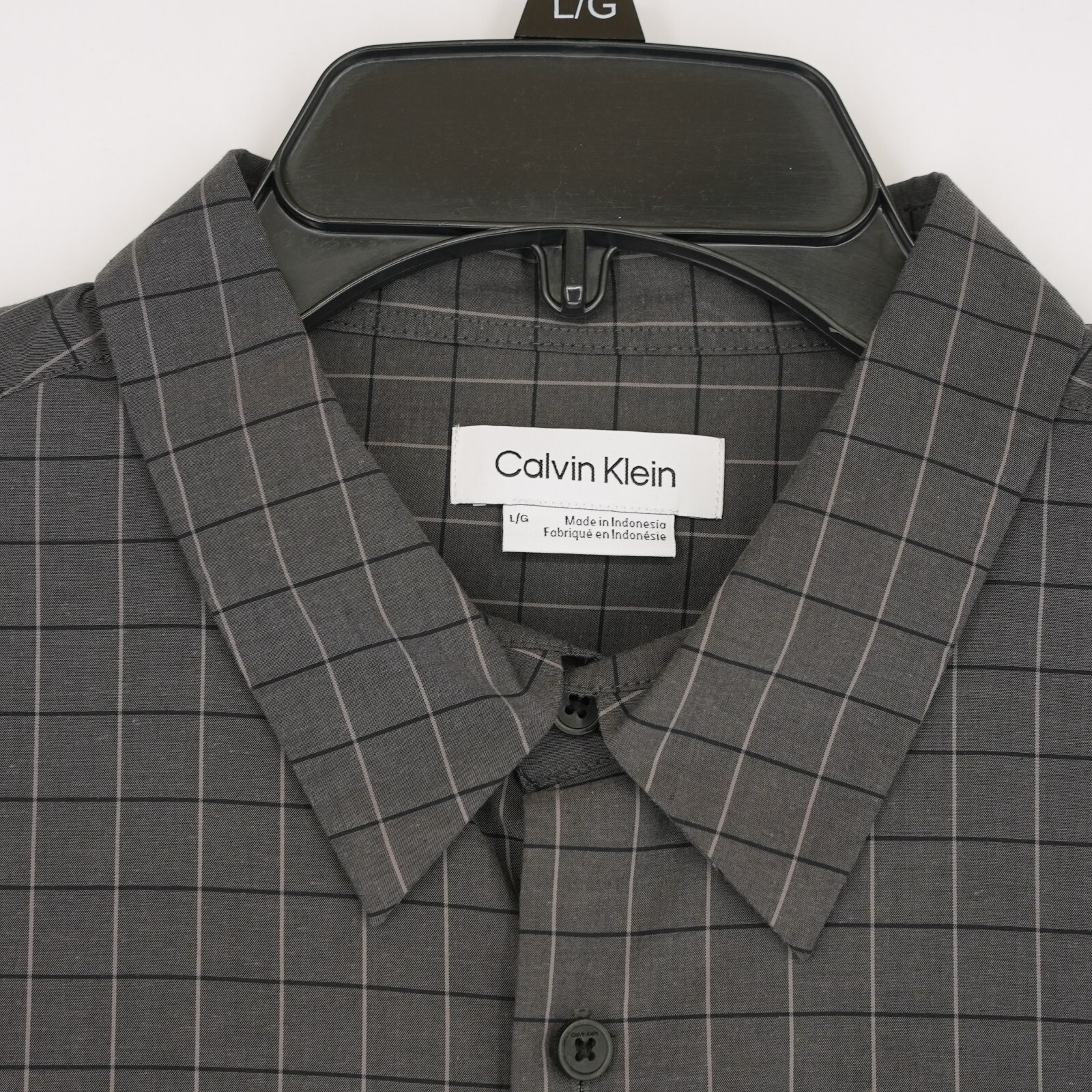 Calvin Klein Men's Long Sleeve Dress Shirt Large Gray Check Stretch Cotton NWT