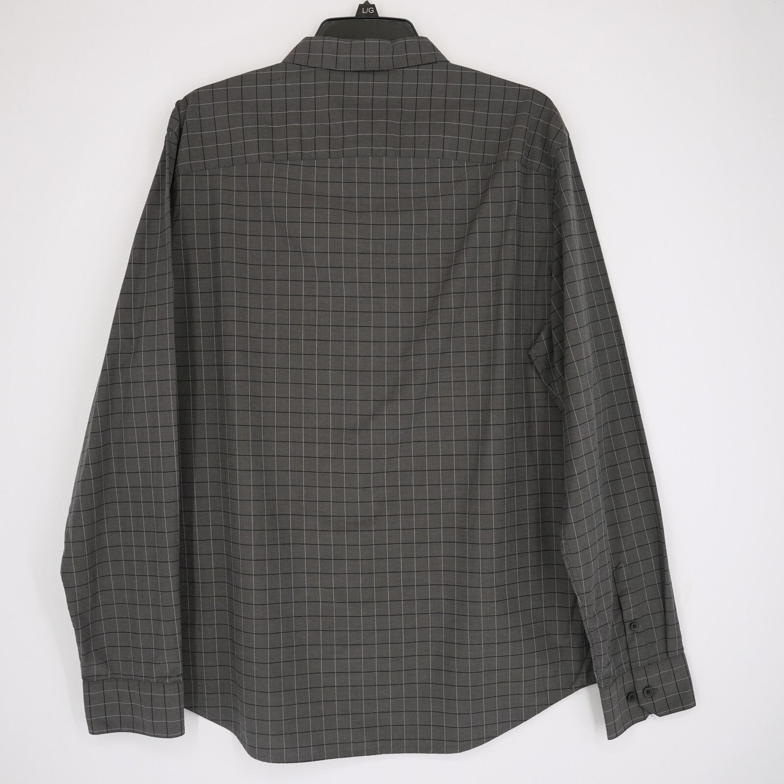 как выглядит Calvin Klein Mens Long Sleeve Dress Shirt Large Gray Check Stretch Cotton NWT фото