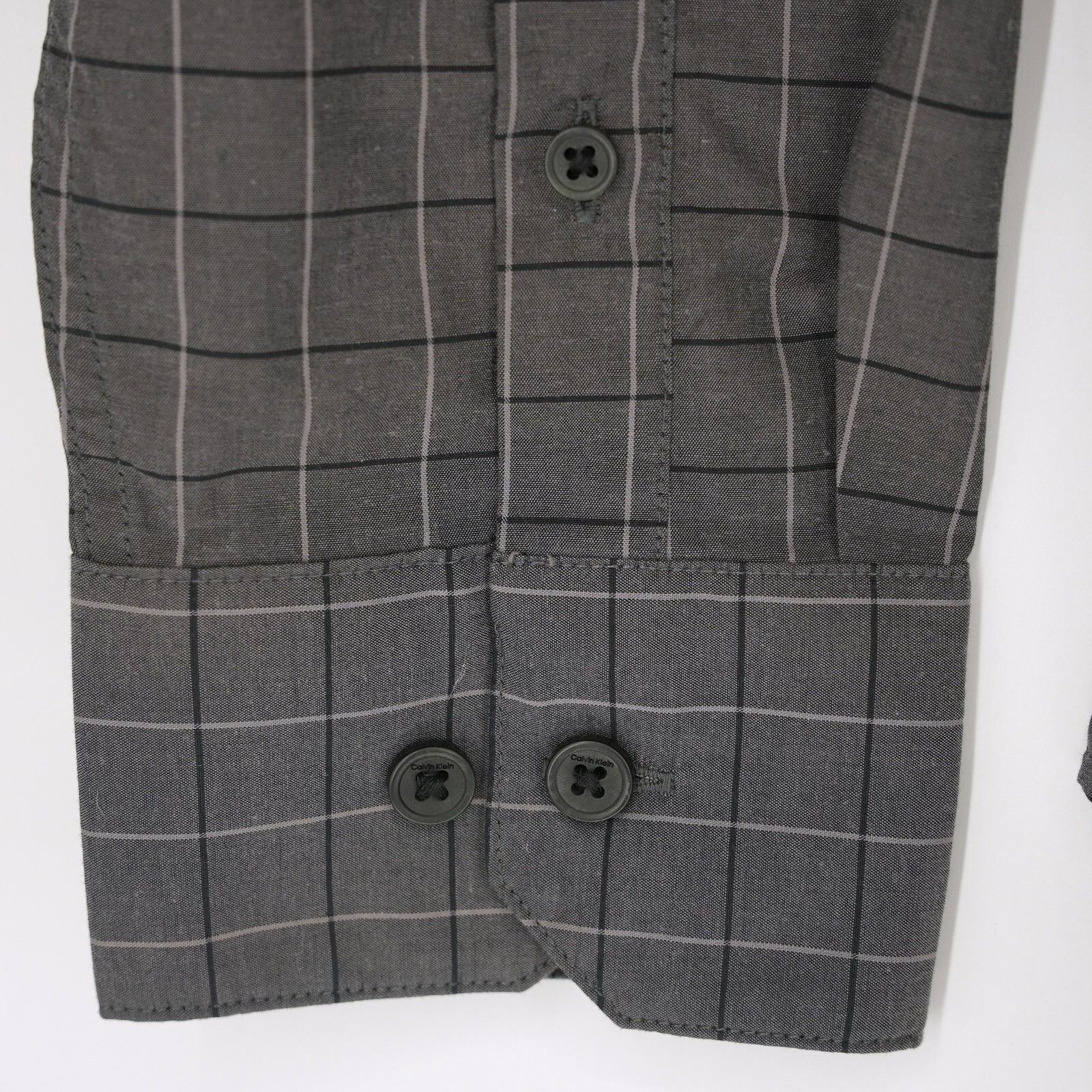 как выглядит Calvin Klein Mens Long Sleeve Dress Shirt XL Gray Check Stretch Cotton NWT фото