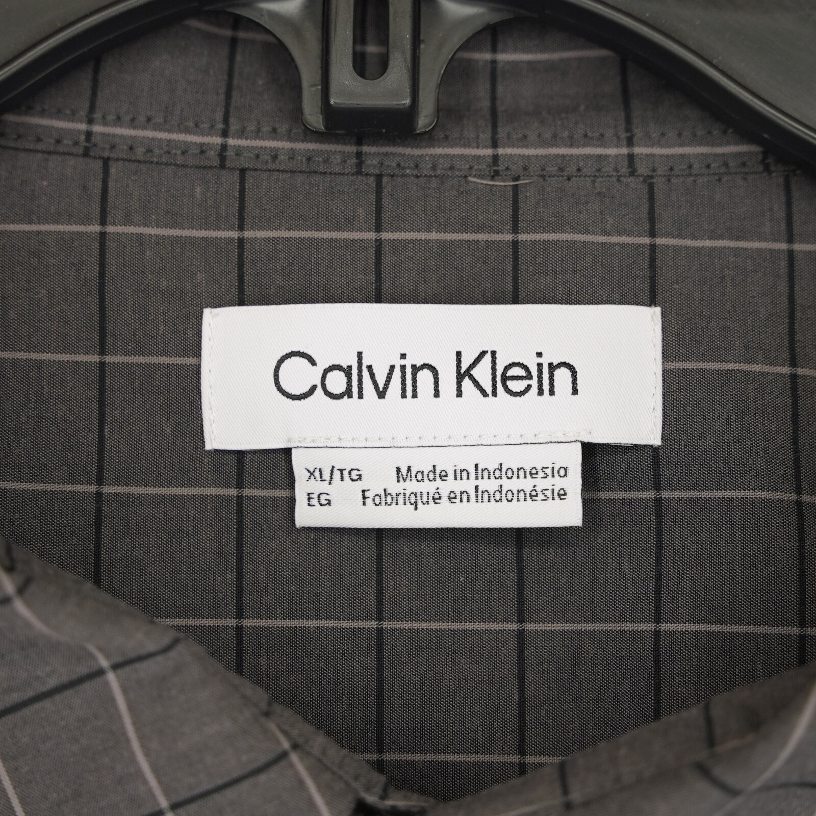 Calvin Klein Men's Long Sleeve Dress Shirt XL Gray Check Stretch Cotton NWT