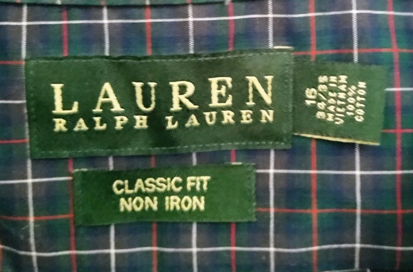 как выглядит Lauren Ralph Lauren Button Down Shirt Mens 16-34/35 Navy Blue Green Plaid Cotton фото
