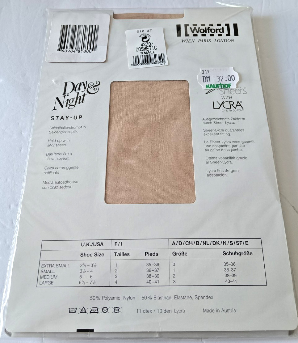 NEW Wolford Women's Nude Day Night Stay Up Lace Lycra Thigh High Stockings Small