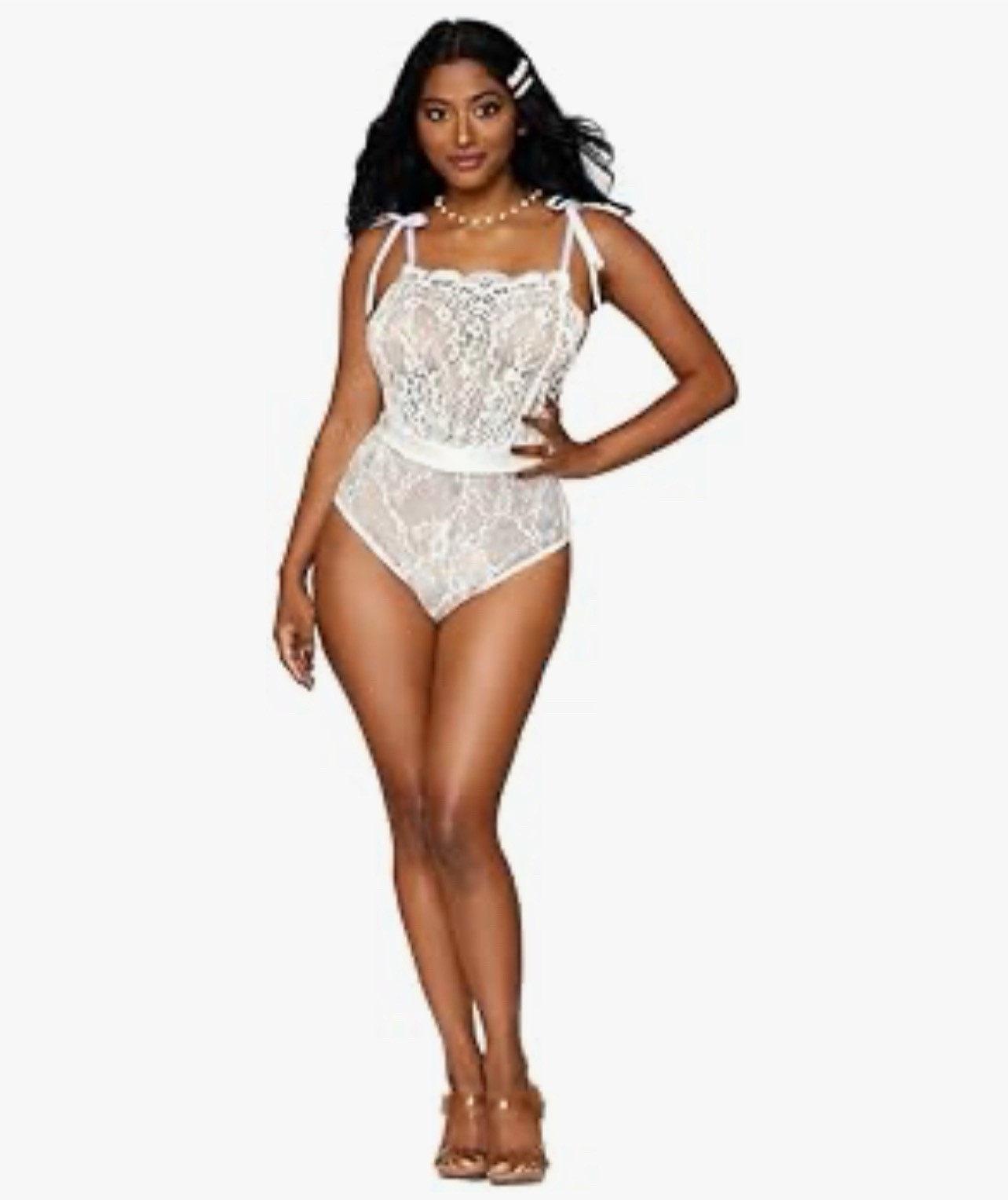 как выглядит NIP Dreamgirl Eyelash Stretch Teddy w/ Ribbon Shoulder Ties Bridal Lingerie фото