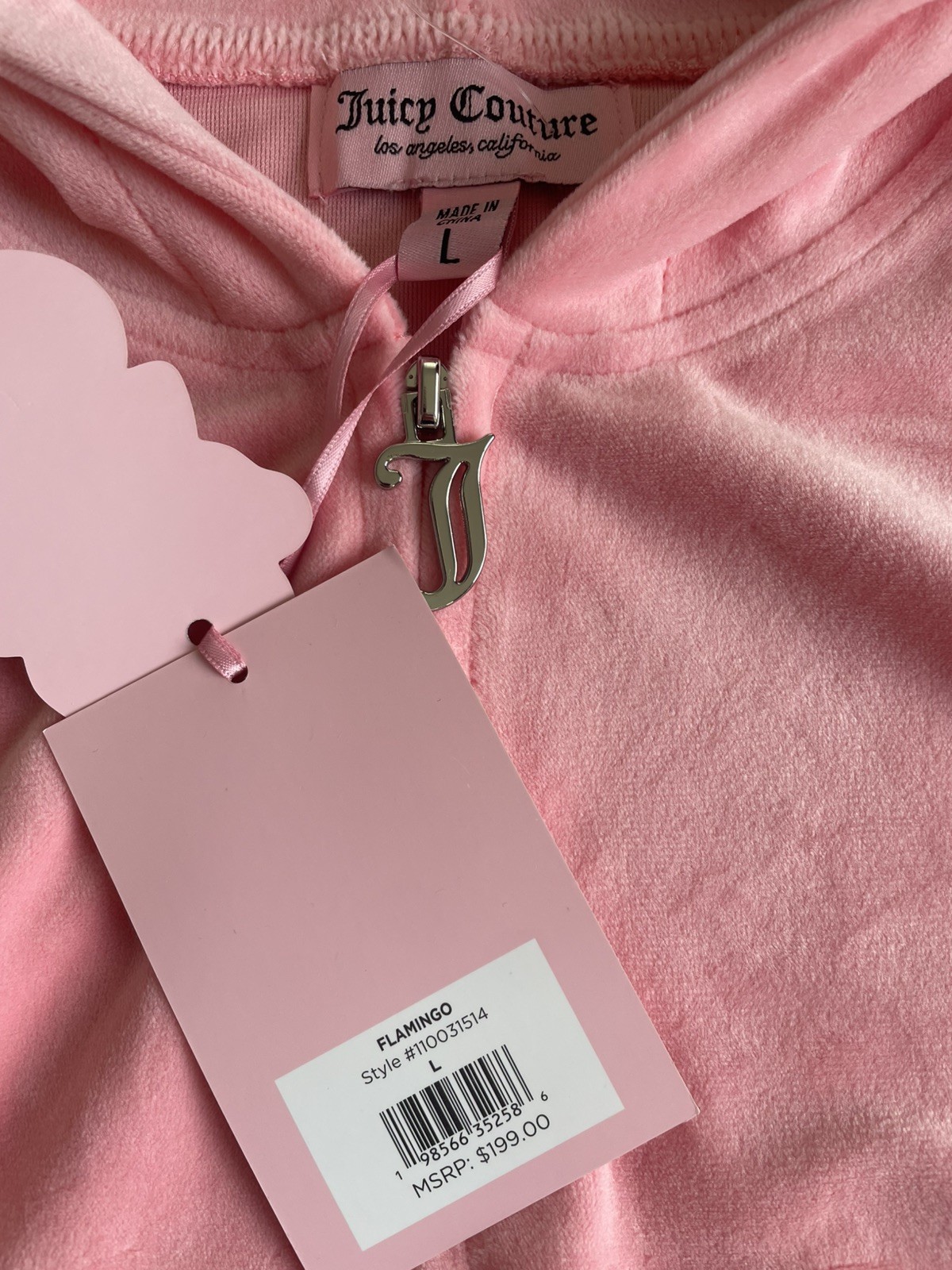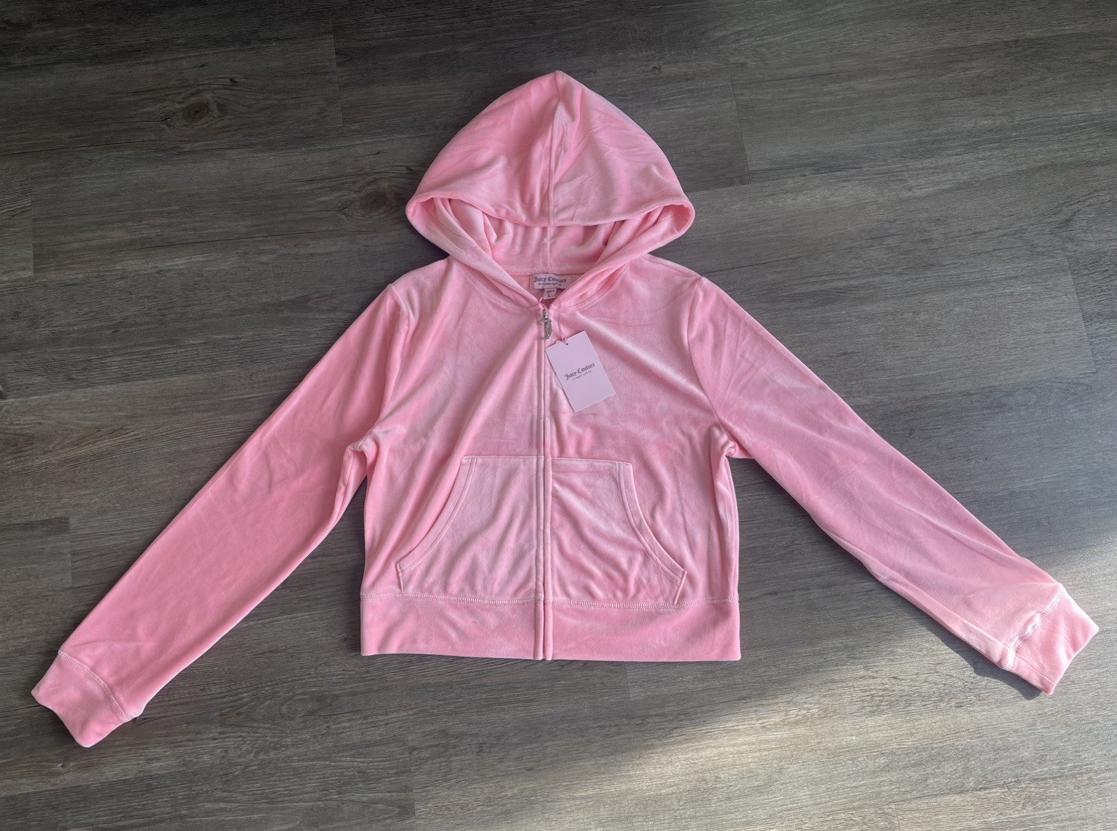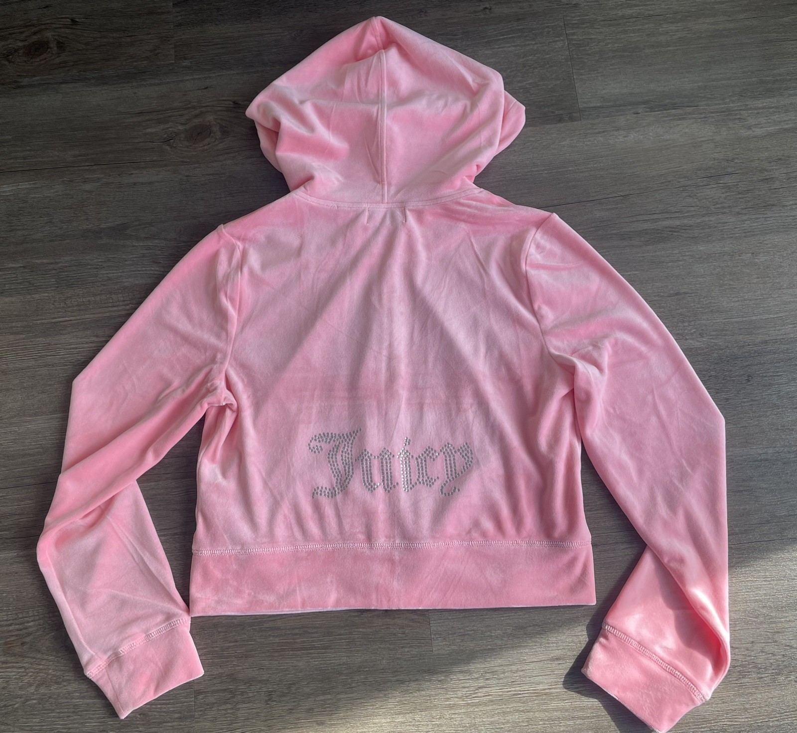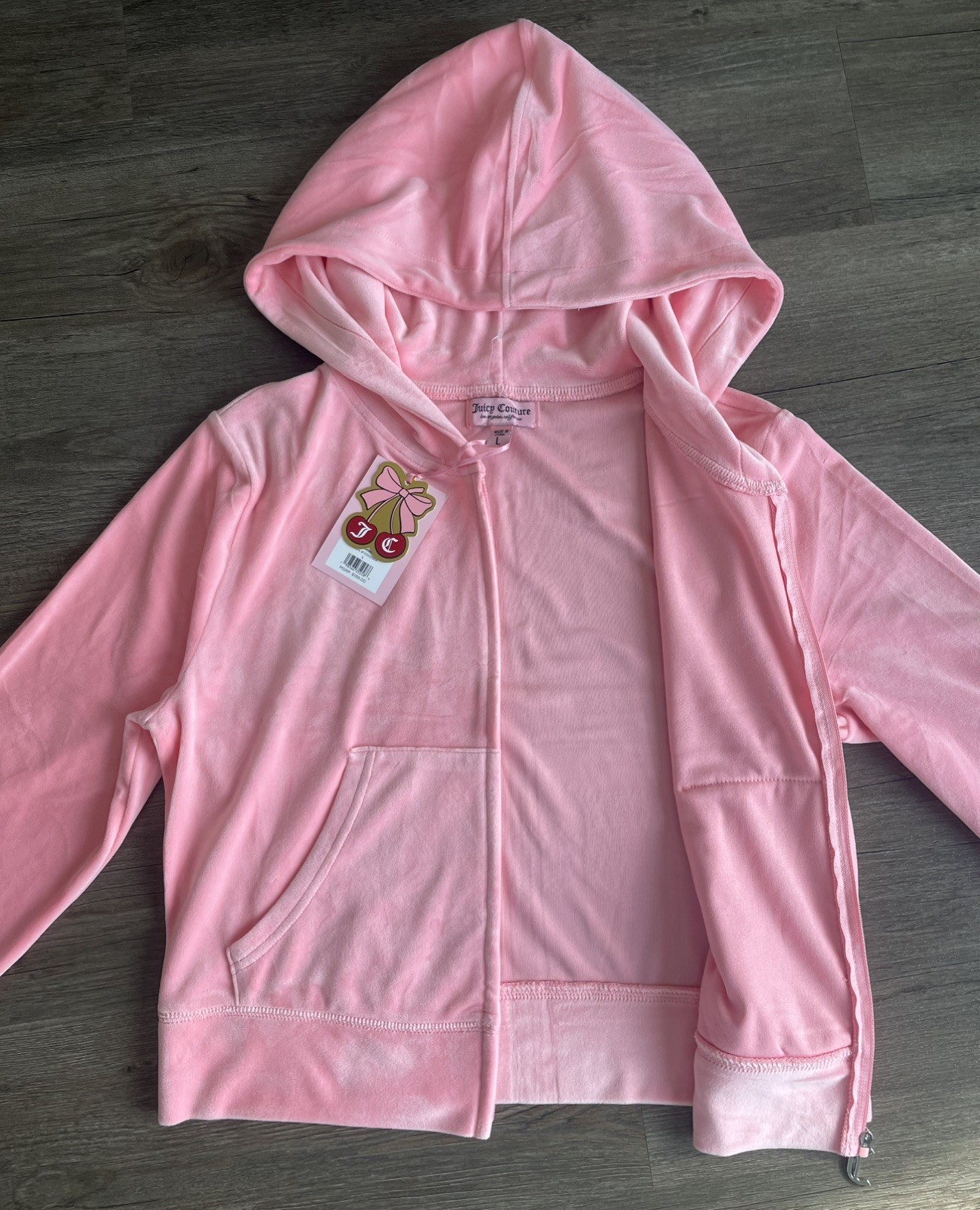 Juicy Couture Velour Tracksuit Set L Hoodie Pants Rhinestone Logo Pink 2 Pc NWT