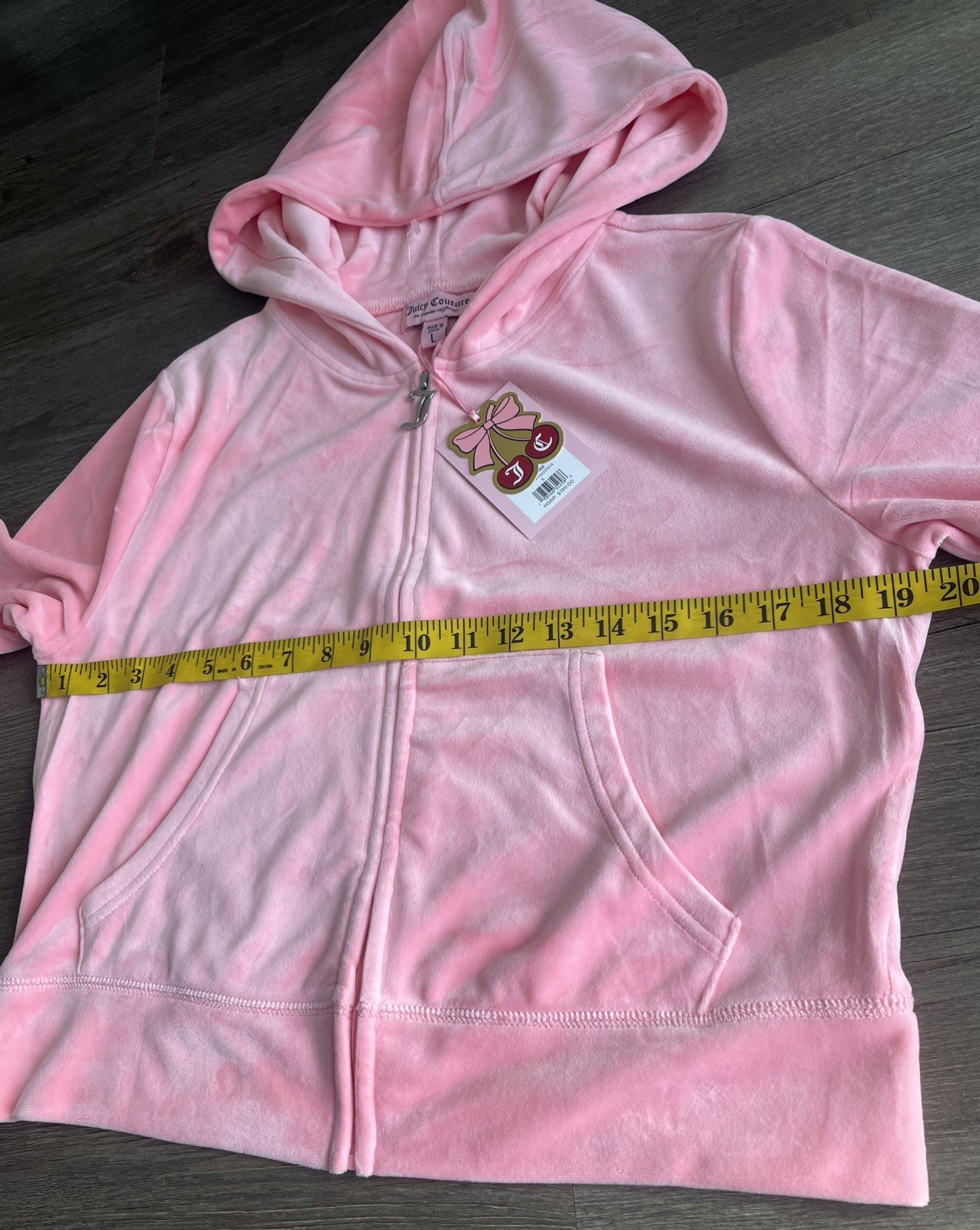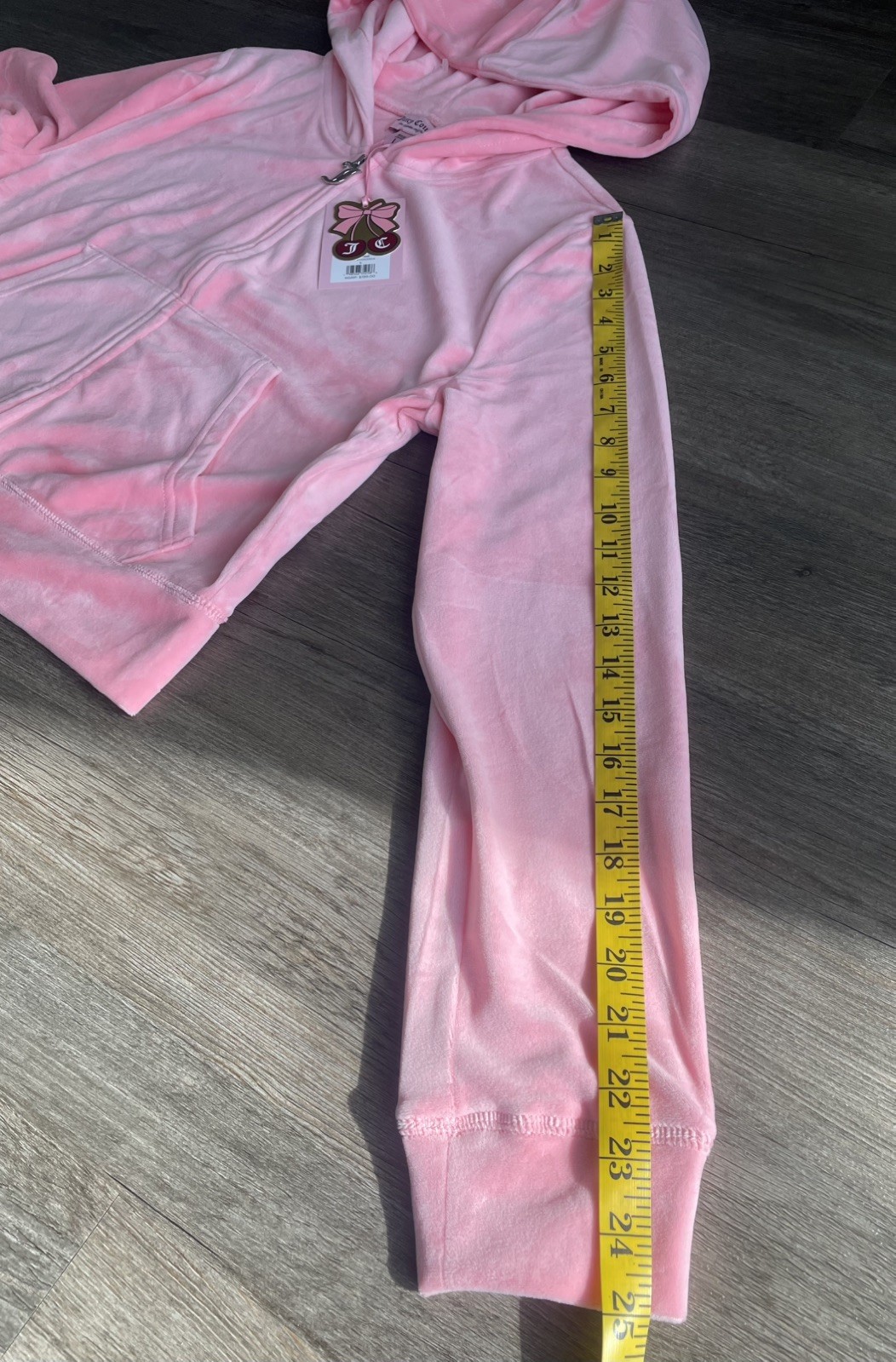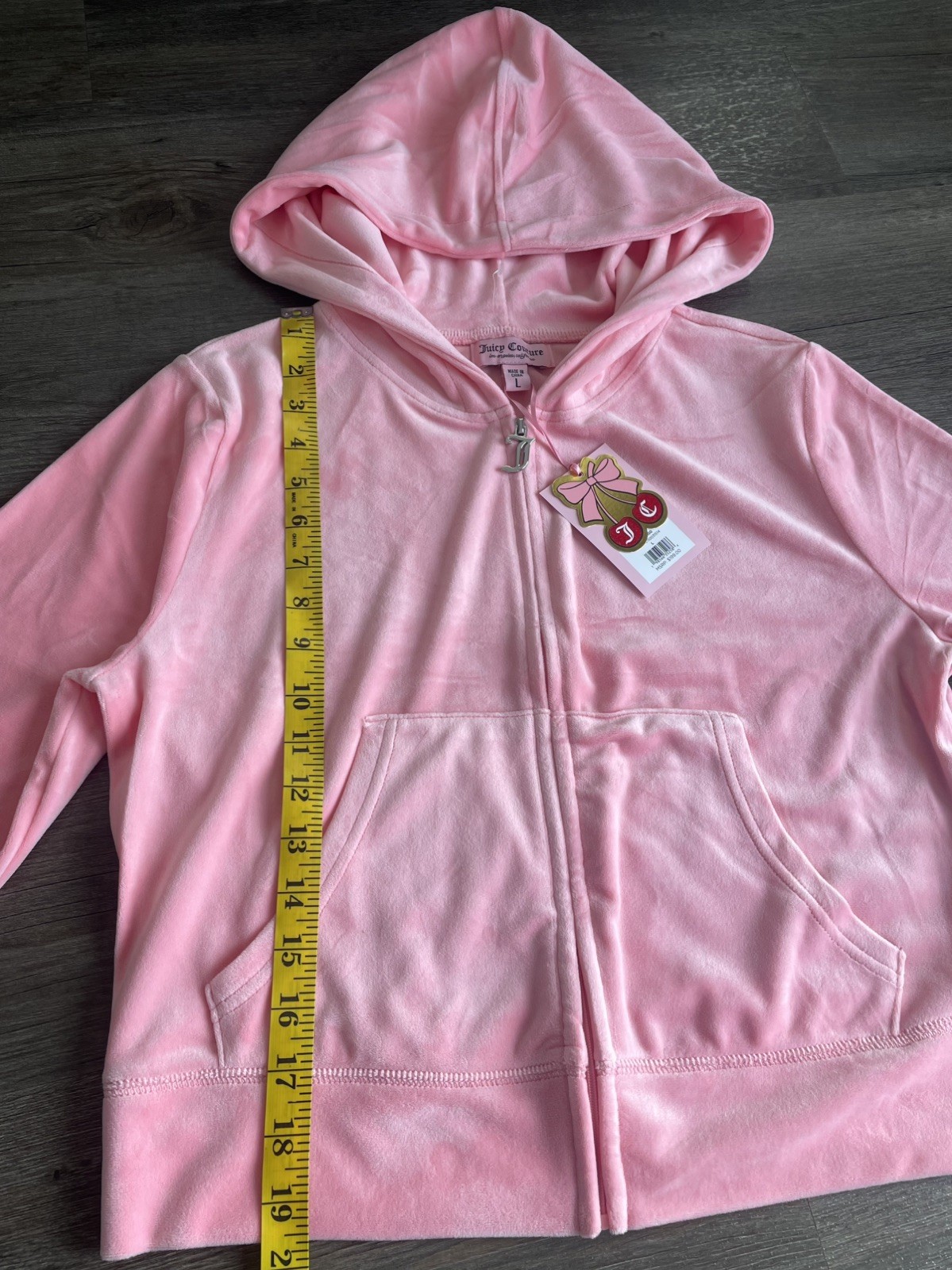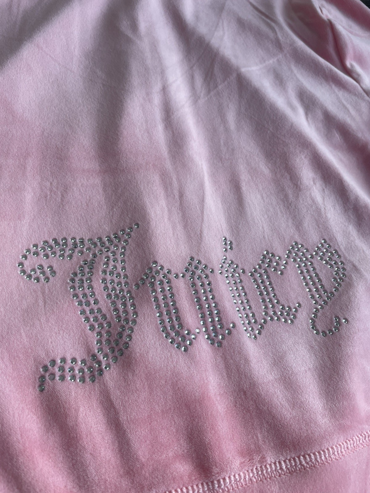 как выглядит Juicy Couture Velour Tracksuit Set L Hoodie Pants Rhinestone Logo Pink 2 Pc NWT фото