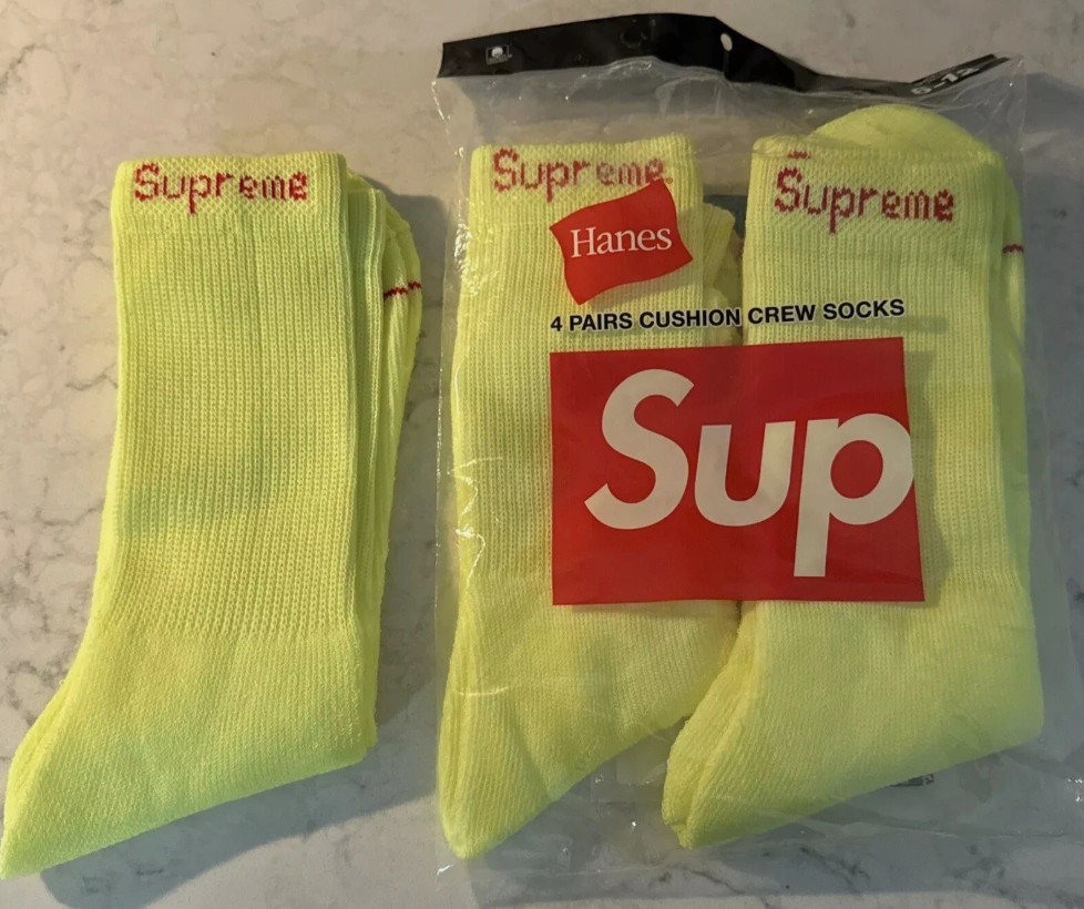 Supreme Neon Yellow Logo Crew Socks 4-Pack Sealed Unisex Fluorescent NWT 2026