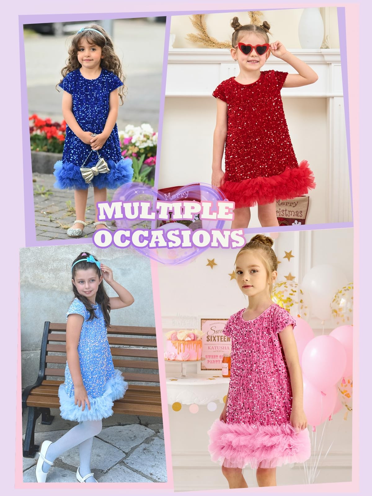 Girls Sequin Dress Sparkly Gown Party Dresses Little A-Line Velvet Dress Pink...