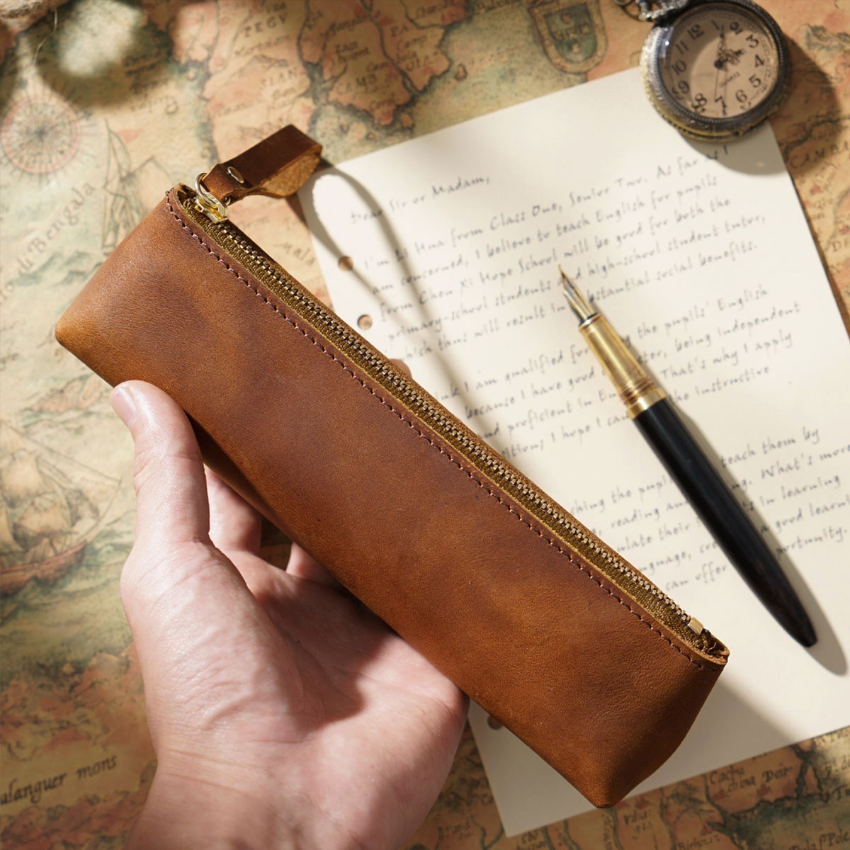 • 2Pcs Leather Pencil Case Small Zipper Pen Bag Stationery Box Pouch For Men Women