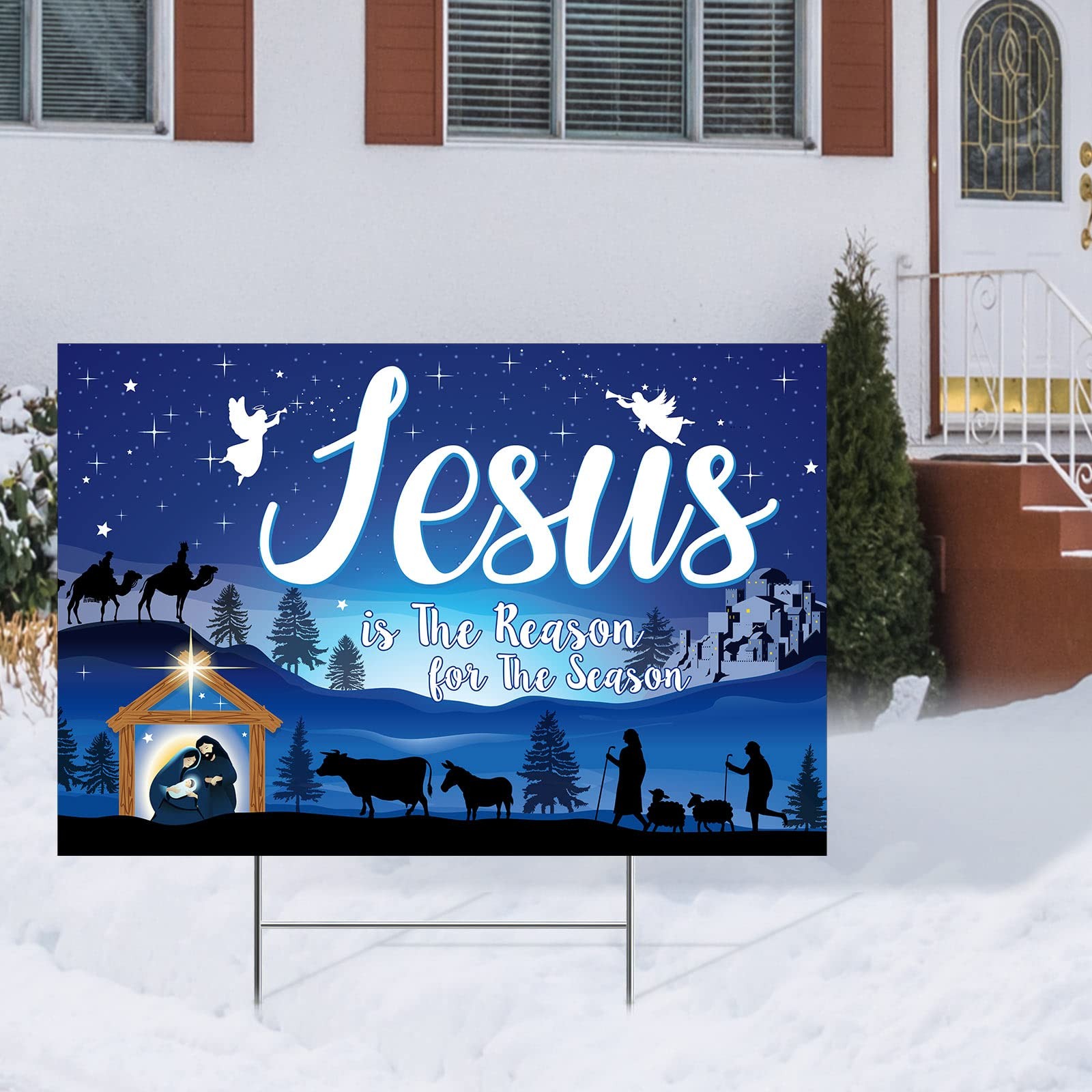 24inch Christmas Holy Nativity Yard Sign with Stakes Jesus Is the Reason for ...