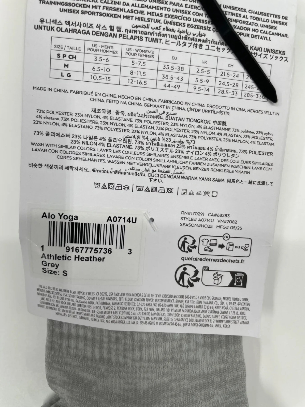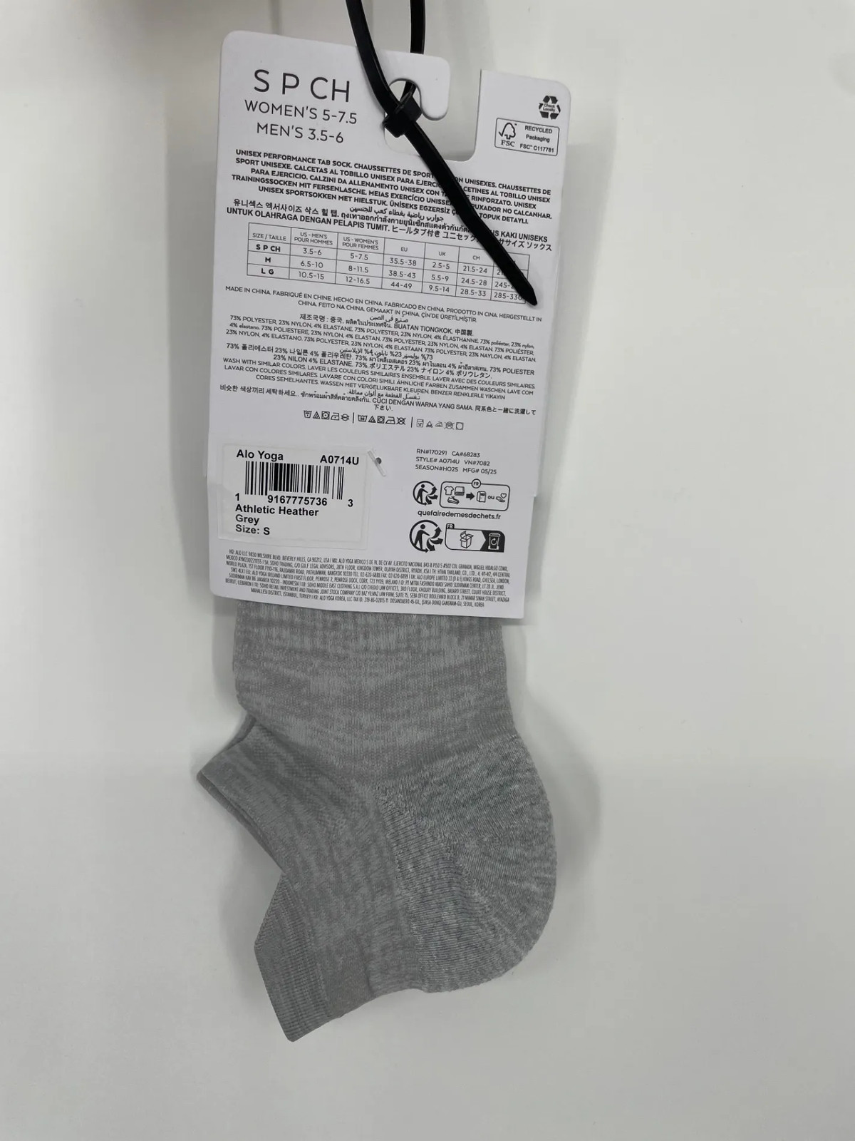 Alo Yoga Unisex Performance Tab Socks S Athletic Heather Grey Yoga Ankle