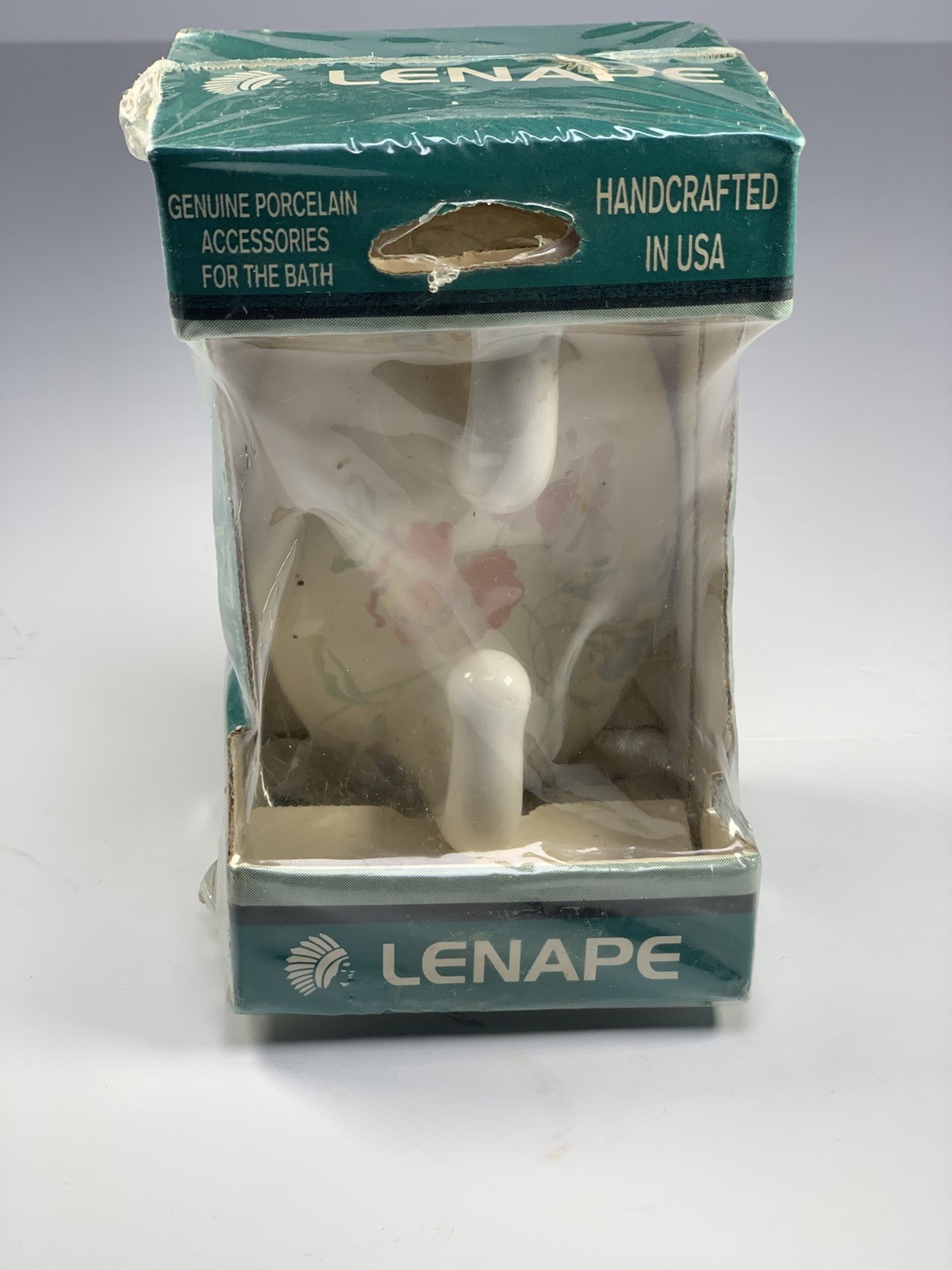 Vintage Lenape Classic Double Robe Hook Genuine Porcelain White/Floral NEW NOS