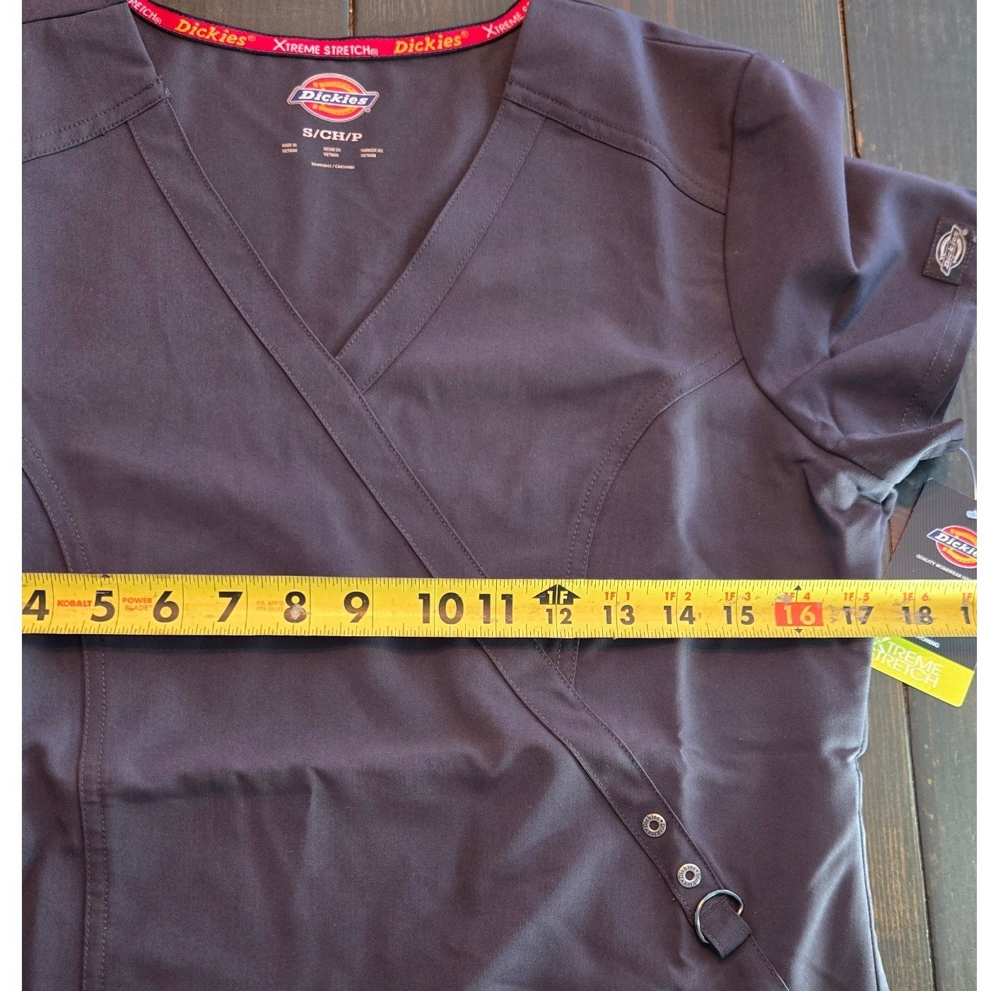 как выглядит Dickies Xtreme Stretch Scrub Top Womens Small Pewter Gray charcoal 85956 NWT фото