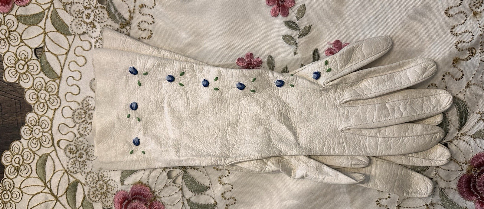 Vintage Lot Of Leather/ Opera Gloves 3 Pair Embroidered 6 6 1/2