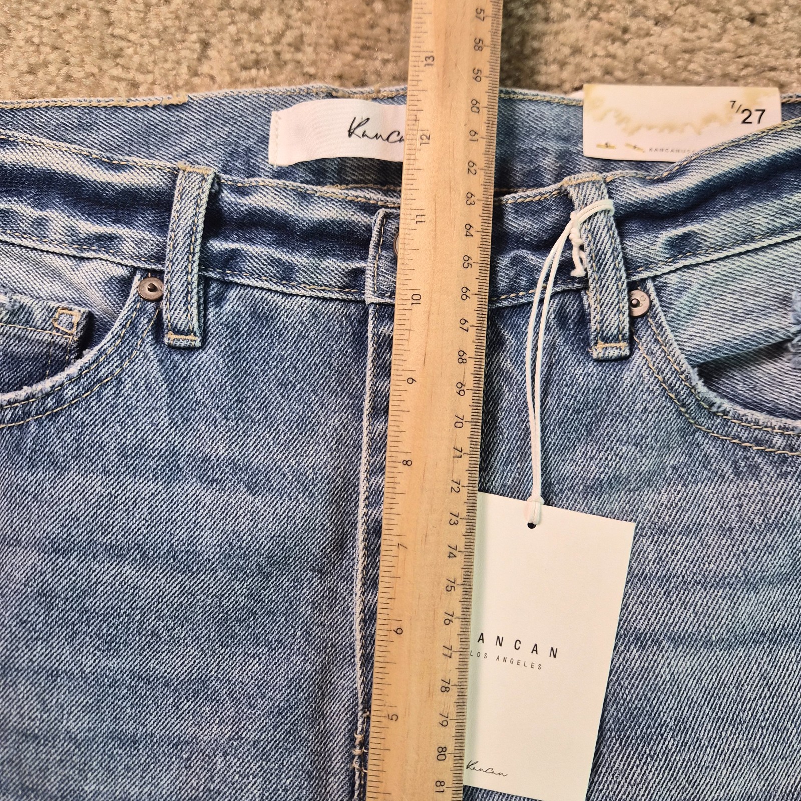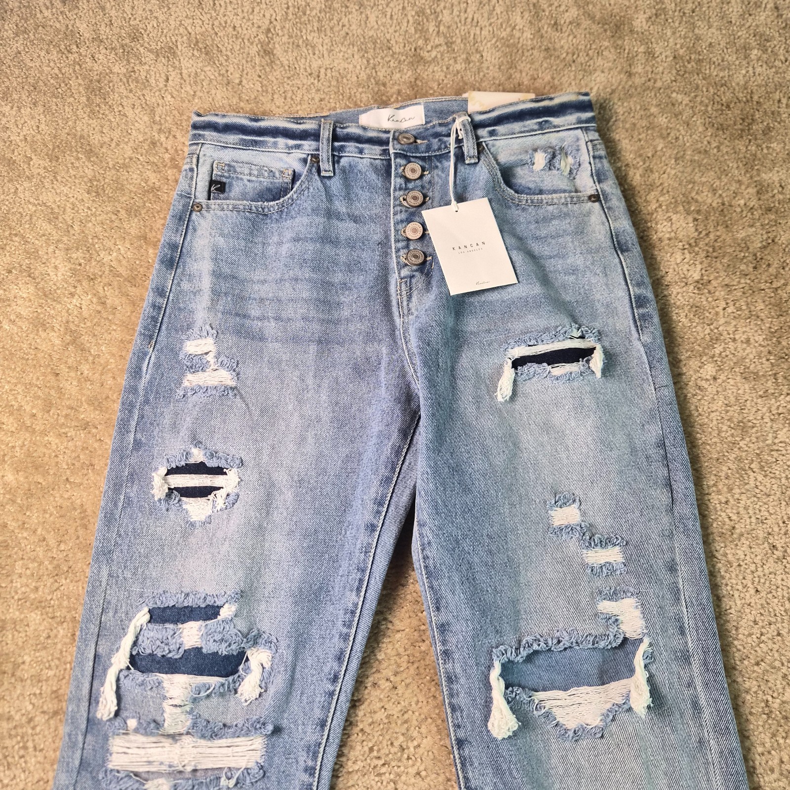 как выглядит Kancan Womens High Rise 90s Boyfriend Jeans Size 7/27 Blue Denim Distressed F819 фото