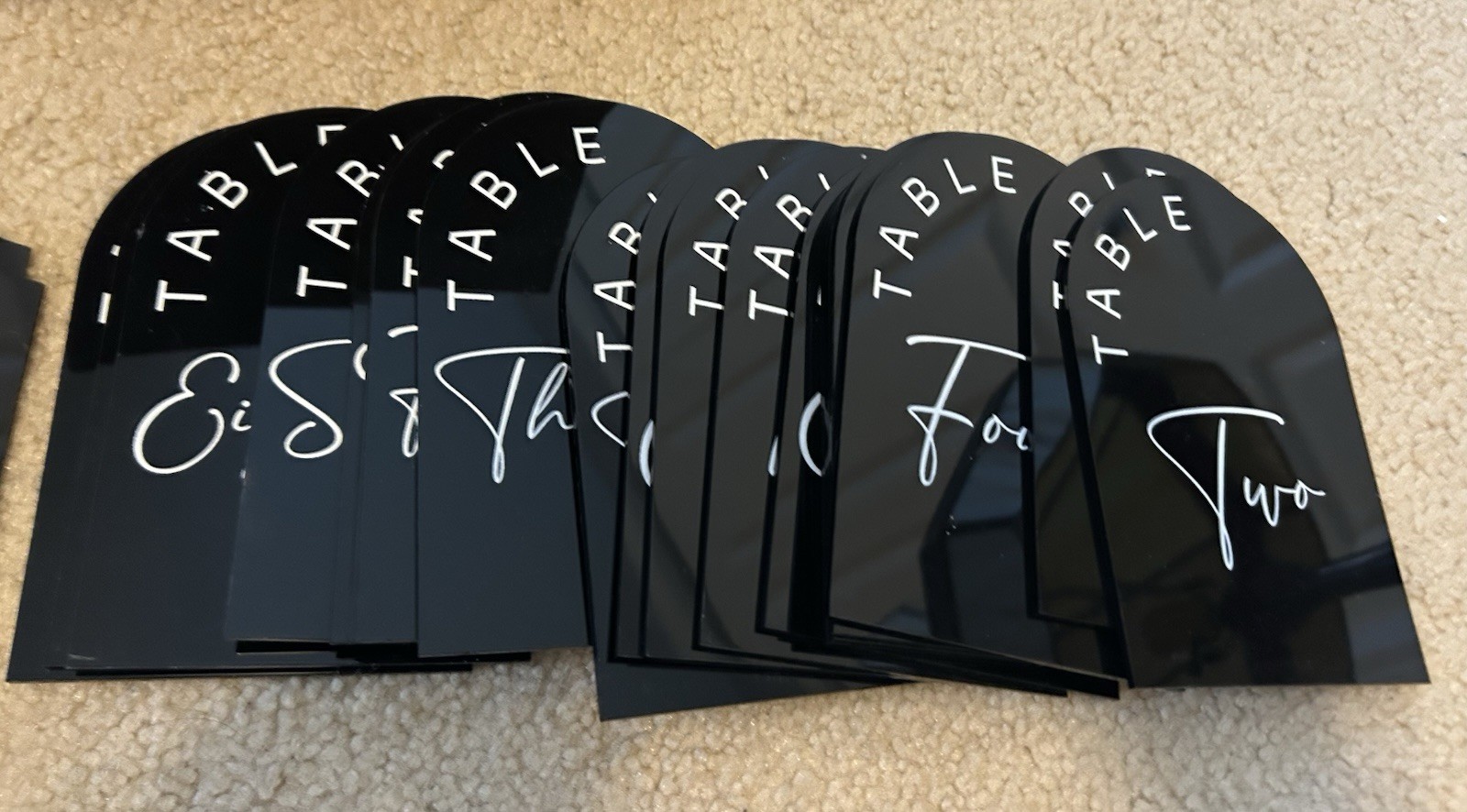 Black Arch Acrylic Table Numbers for Wedding Reception 5 x 7 White Font 1 - 20