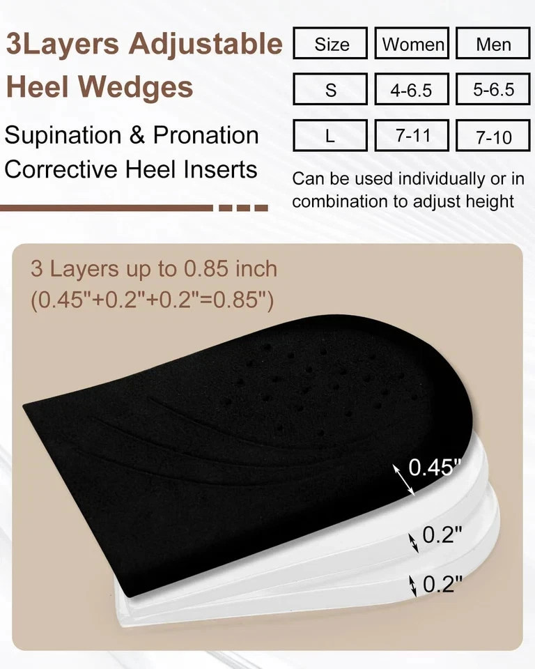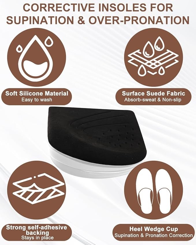 2 Pairs 3 Layer Corrective Insoles for Supination Overpronation Correction, Adhe