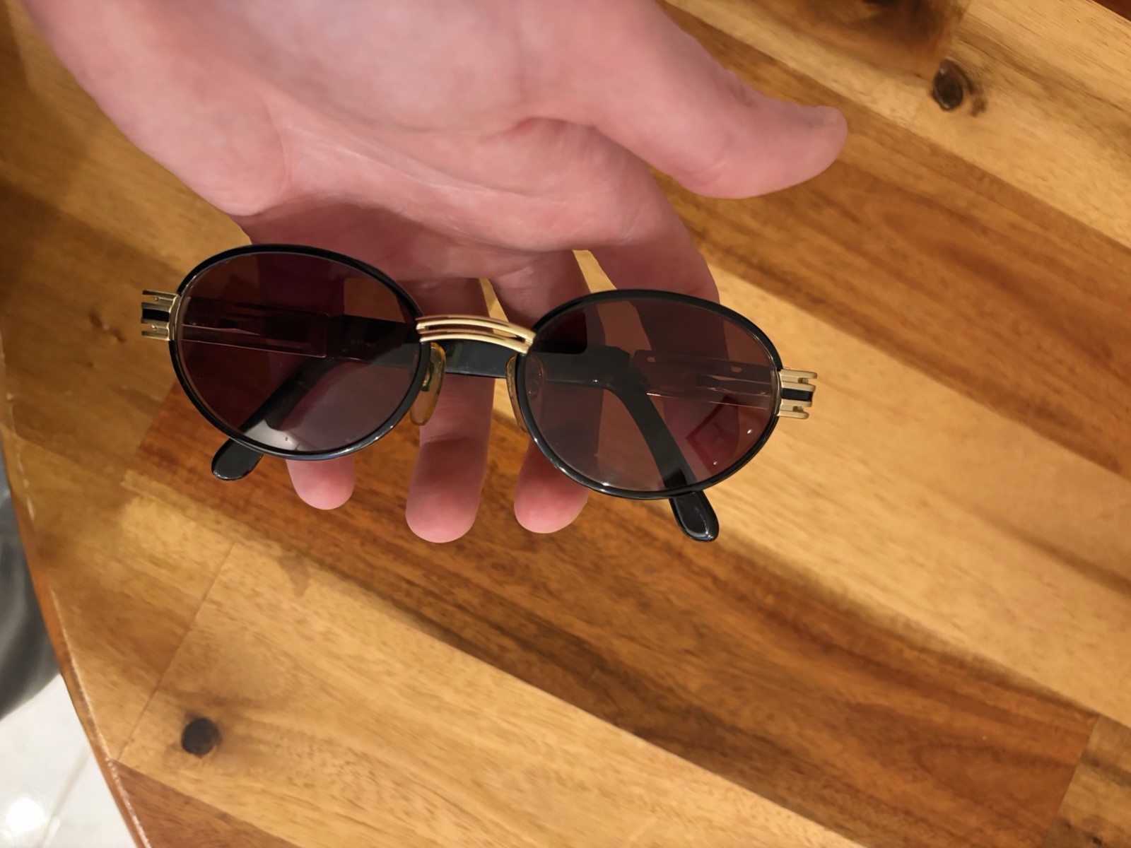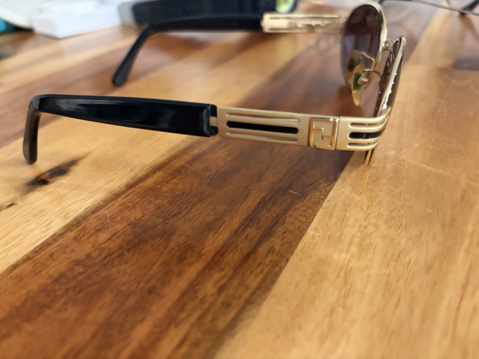 как выглядит Vintage Fendi Round Sunglasses Black Gold Metal Plastic Frame Brown Lens фото
