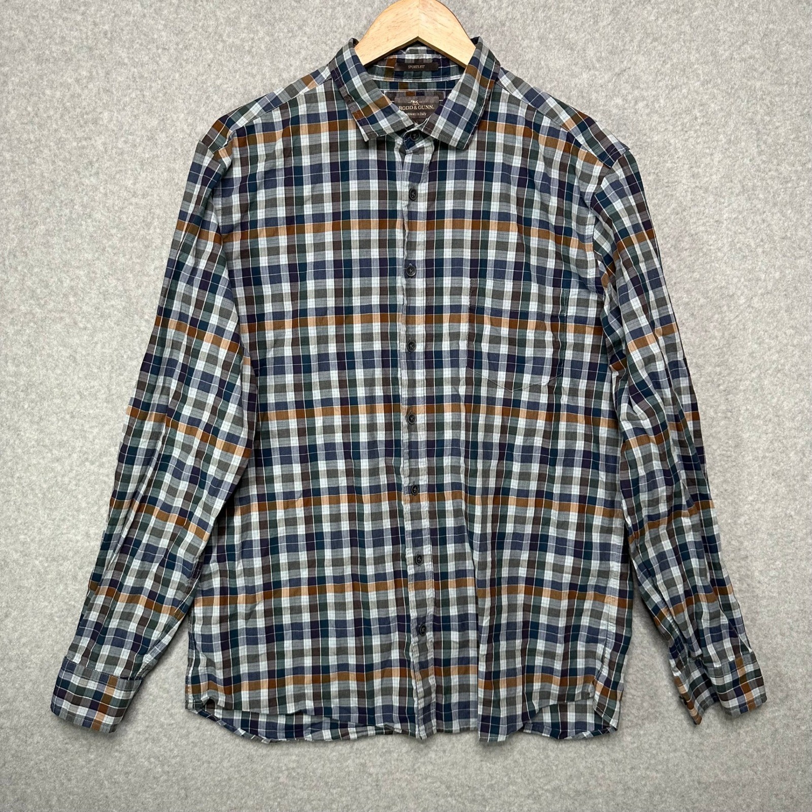 Rodd Gunn Mens Sports Fit Plaid Button Up Shirt Large Woven in Italy Cotton