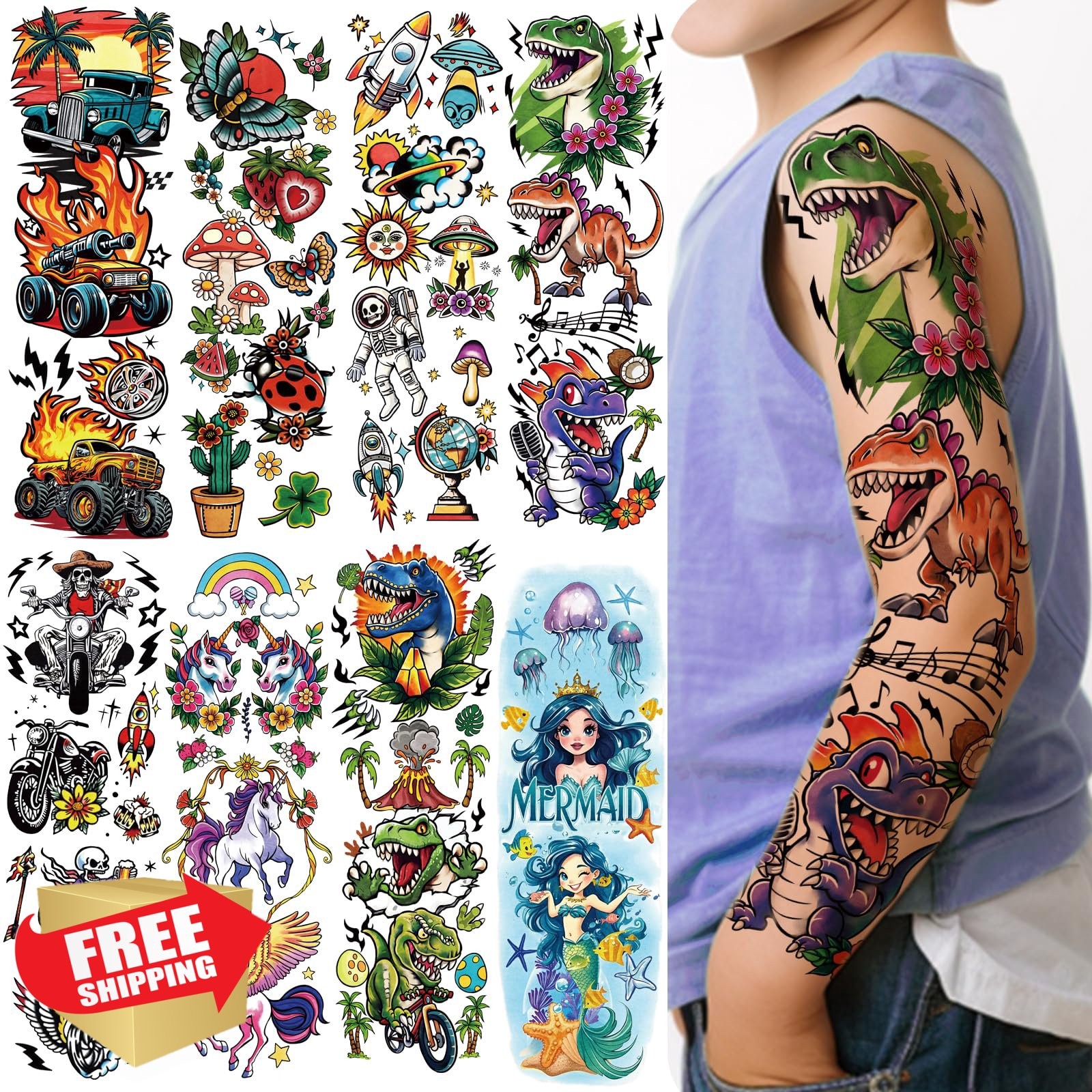 52pc Kids Temporary Tattoos, Mermaid Dinosaur Animals Full Arm