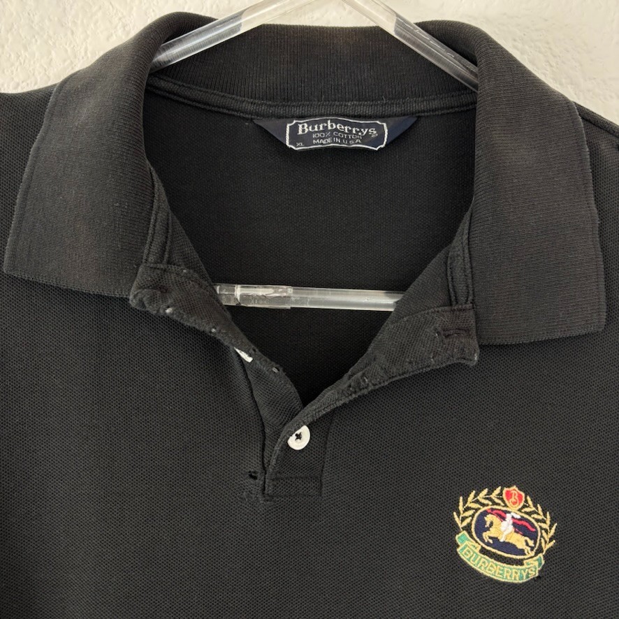 как выглядит Vintage Burberrys Mens Polo Shirt XL Black Distressed Destroyed USA 80 90s Crest фото