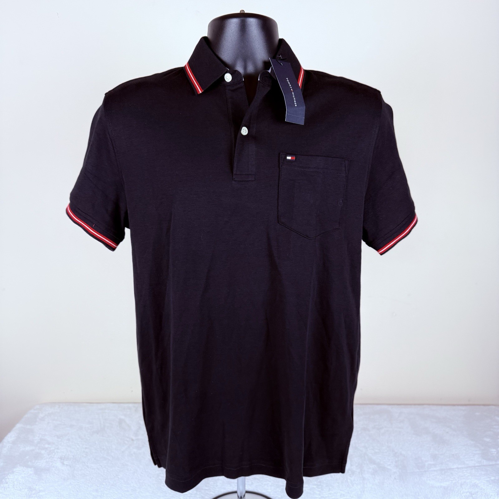 New Tommy Hilfiger Polo Shirt Men's Small Stretch Cotton Black NWT XM03529 002
