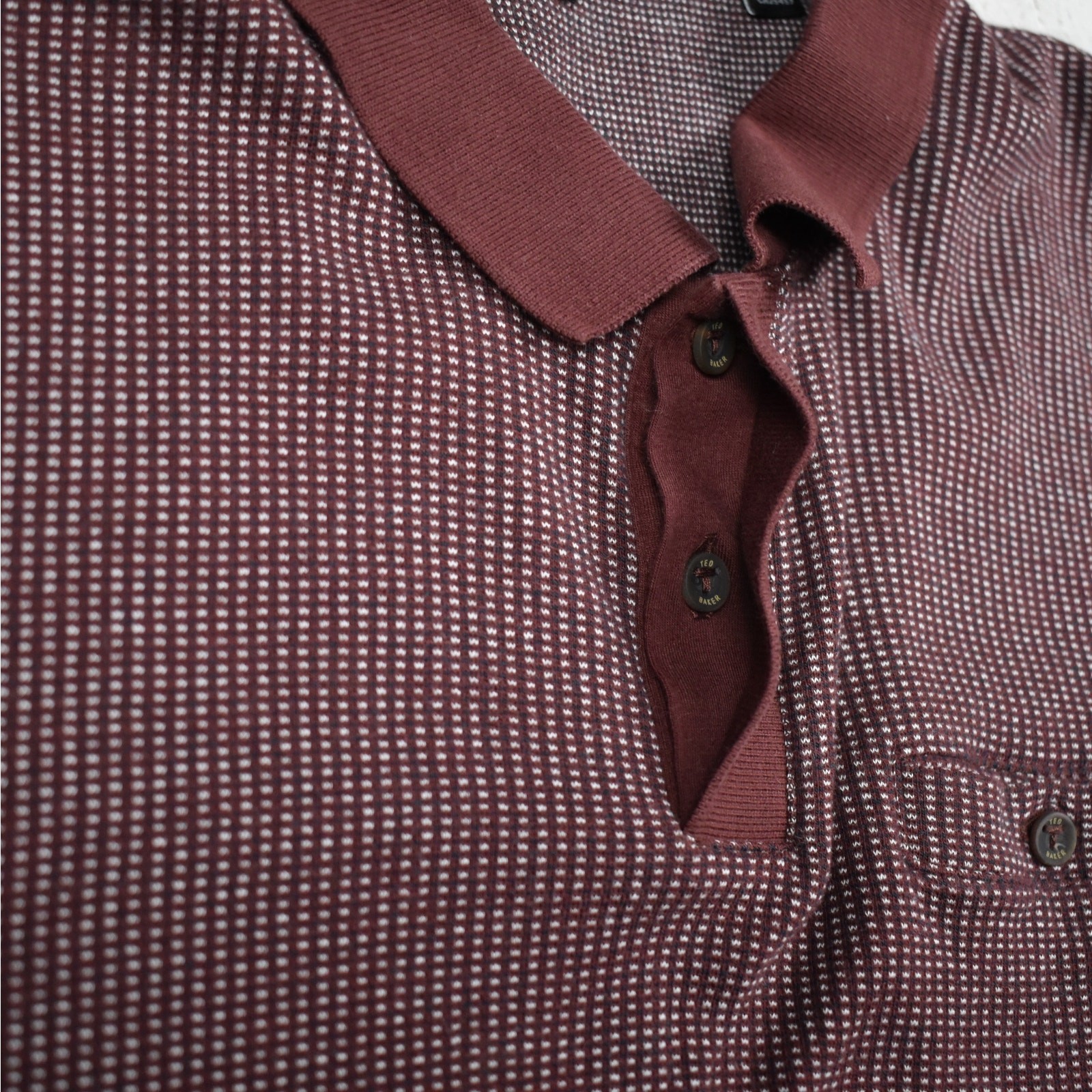 Ted Baker London Men's Polo Shirt Size 6 Medium Short Sleeve Cotton Knit Maroon