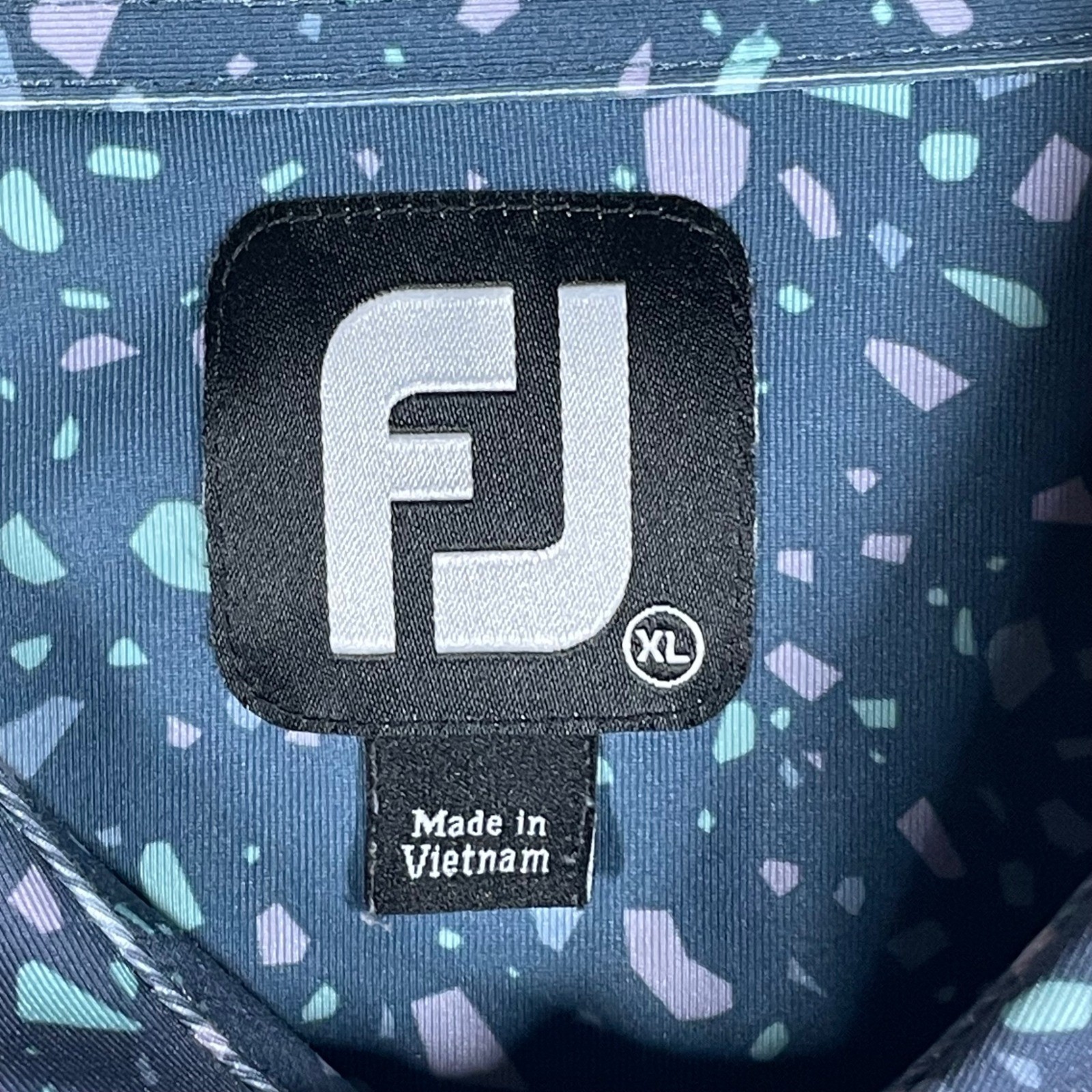 FootJoy FJ Mens XL ProDry Golf Polo Shirt Navy Confetti Terrazzo Print Short Slv