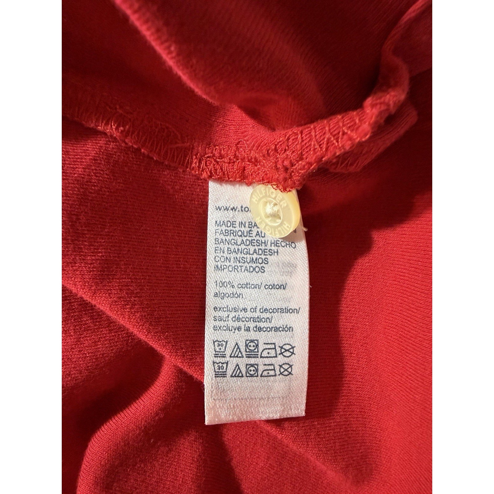 Tommy Hilfiger Mens Large Shirt, Red Polo Short Sleeve Striped Collar Cotton