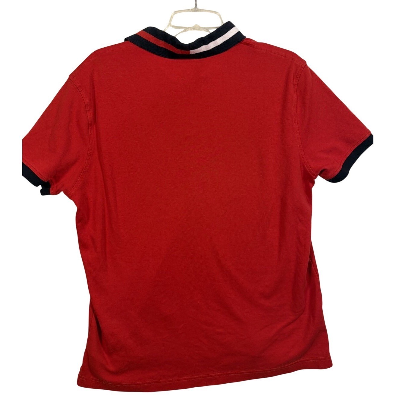 как выглядит Tommy Hilfiger Mens Large Shirt, Red Polo Short Sleeve Striped Collar Cotton фото
