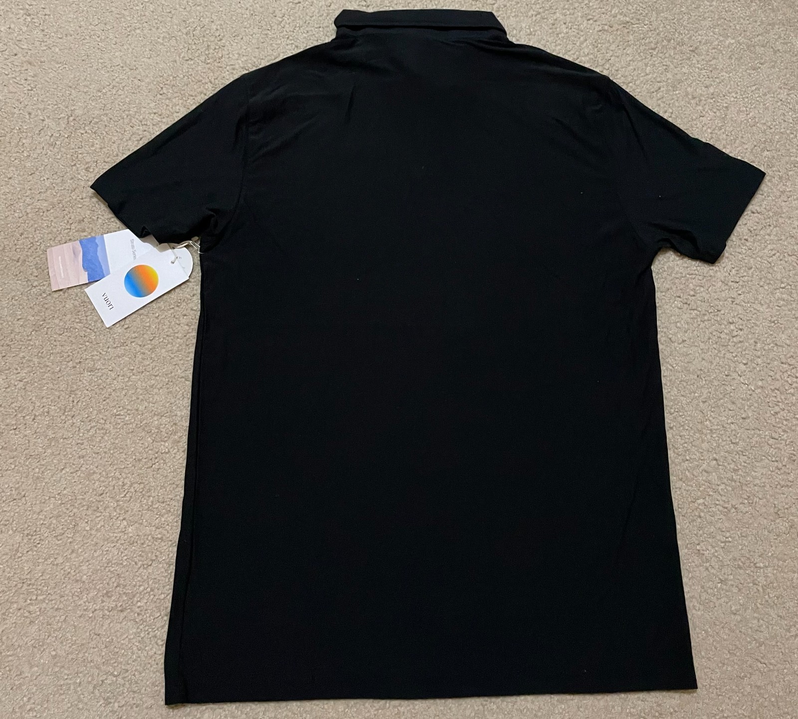 как выглядит Vuori Strato Tech Polo Shirt Mens Large Black Performance V188 Logo NWT фото
