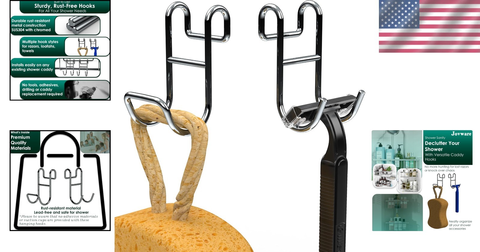 STARICH Shower Caddy Shelf Basket Rack Hooks Stainless Steel Metal Bathroom