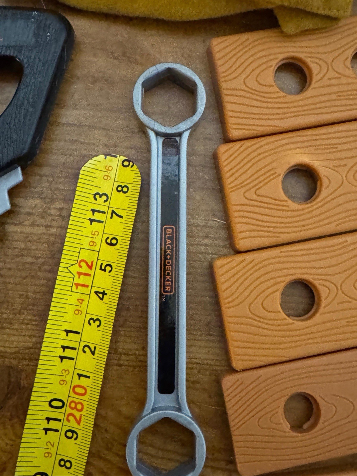 как выглядит Black and Decker Junior Toy Tool Set Tools Safety Saw Tape Measure Bag фото