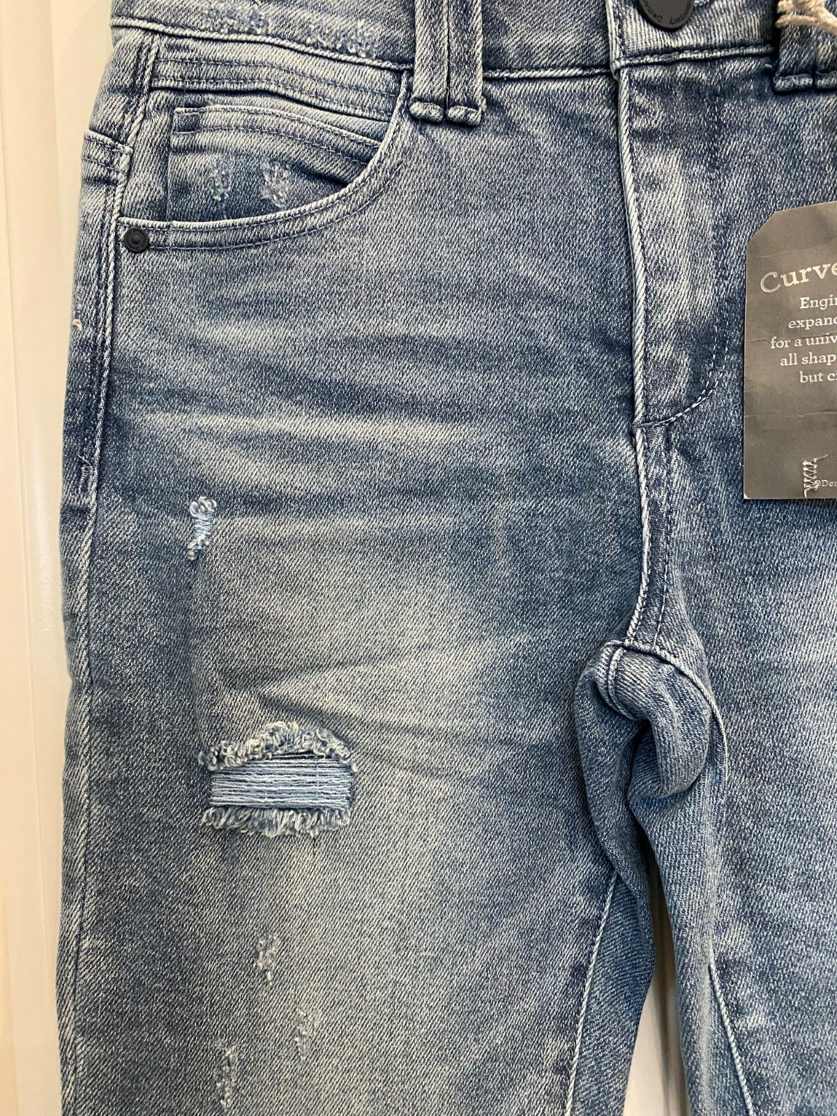 как выглядит Democracy Ab Technology High Rise Light Blue Raw Hem Jeans Distressed фото