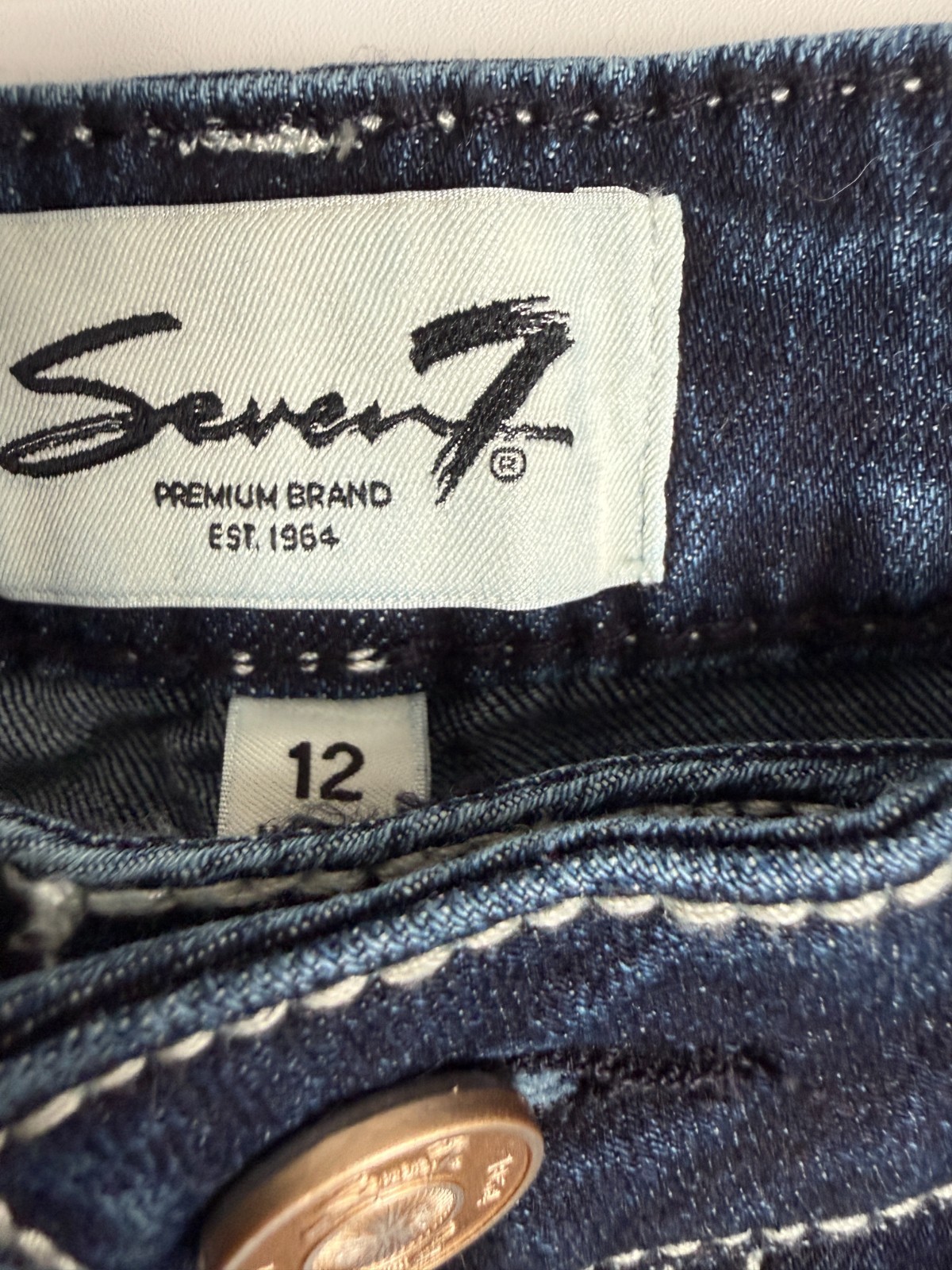 NWT Seven 7 Starlette Straight Denim Jeans SZ 12 Womens Rhinestones Embellished