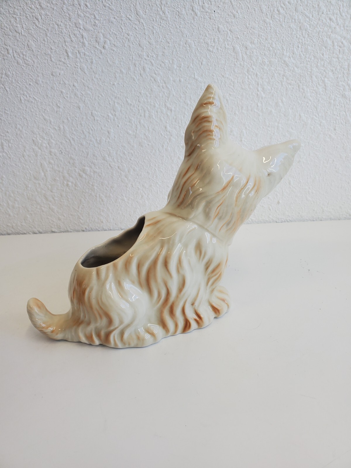 • Vintage Ceramic Scottie Scottish Terrier Dog Planter Cream Brown